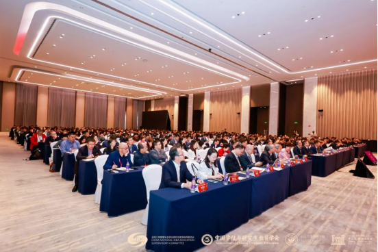 下午,大会围绕“MBA教育变革助力中国式现代化进程”进行研讨,会议由中山大学管理学院副院长汪林主持。教育部学位与研究生教育发展中心论文质量监测处处长李恒金、清华大学经济管理学院副院长徐心、江西财经大学工商管理学院院长胡海波、山东大学管理学院院长武常岐、中山大学管理学院院长张俊生分别就《以精细化高标准论文质量监测服务为基助力研究生教育分类发展》《拥抱AI的商学院教育:知与未知》《论文评价改革与MBA人才培养:内在逻辑与发展路径》《新格局下MBA教育的机遇与挑战》《MBA教育变革:国际经验》进行主题发言,他们分享了各自领域的深刻见解与前沿探索,深入探讨了在面对全球化、数字化、绿色化的多重挑战下,MBA教育如何深化内涵建设、优化课程设置、强化实践导向、促进产学研融合,更好地服务于国家战略需求和社会经济发展大局。