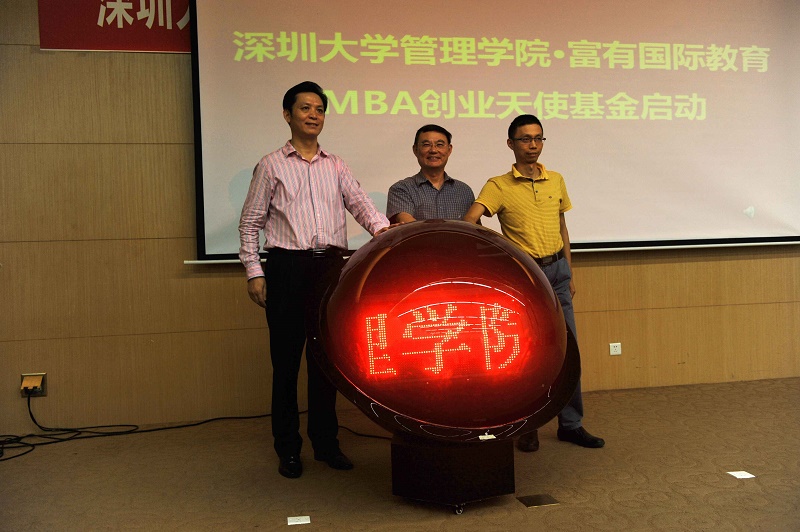 11月22日,深圳大学管理学院·富有国际教育MBA创业天使基金启动仪式在深圳大学图书馆报告厅举行。据悉,从本届开始,富有国际教育将连续5年、每年提供50万元资助深大MBA学生创业。仪式上,管理学院刘军院长、富有国际教育投资有限公司回重屹董事长、MBA教育中心林旭东主任共同按键,启动了新一轮创业天使基金。