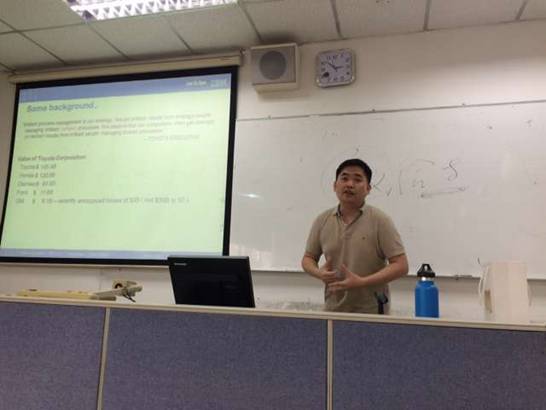 课程开始,潘老师给同学们讲解了六四格玛质量管理的系统理论知识;之后,Bill 从实际案例出发给大家讲解六四格玛在企业中的应用。两位老师的讲解深入浅出,相互补充。这种理论与实践相结合的教学模式,使同学们可以快速理解和吸收知识,印象深刻,受益匪浅。除了六西格玛DMAIC 流程介绍之外,Bill 还就SIPOC 流程图进行了课堂实操练习,对精益生产过程的八大浪费进行了逐一介绍和分析。