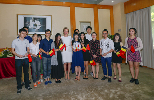 玛蒂尔德还与我校学生亲切交流并合影留念。她表达了对中比关系良好发展的期望,与学生就如何增进两国之间的了解,发展两校间的合作等问题进行了交流。学生谈起对比利时的印象时,认为比利时可以加强在中国的文化宣传,让更多的中国学生了解比利时的文化和教育。王后表示此前也到访过中国,希望未来有更多交流项目的合作,不断增进深大与列日大学之间的联系,也十分期待深大的学生到比利时体验文化和艺术。