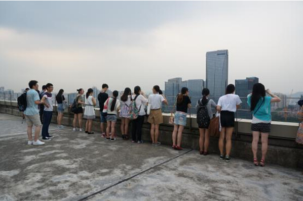 下午4点,夏令营学员们在深大“脚踏实地”集合,在冯元粤和杨辰老师的带领下,观看了深圳大学的微缩景观模型,模型包括现在的老校区和在建中的西丽新校区,学员们对深圳大学的布局和学校规划有了初步了解。紧接着学员们参观了金工坊实验室,感受深圳大学的“土豪“气质,各种实验设备一应俱全,夏日空调冷气十足。之后游览了波光潋滟的文山湖,足迹走过建筑风格新颖独特的南北图书馆,最后到达科技楼,学员们乘坐电梯到达科技楼楼顶,俯瞰深圳大学,全方位视角领略深大魅力。四周环绕国内以及世界知名企业,许多是深大校友创办的,使学员们真正感受到了深圳大学给予学生“天高任鸟飞,海阔凭鱼跃”的自主平台。最后学员们参观了深圳大学校史馆,了解了深大从1983年一直到2015年这段辉煌的旅程,虽然深大历史不悠久,但是所展现的包容创新精神深深地吸引了一批又一批学子来到这里,实现梦想。