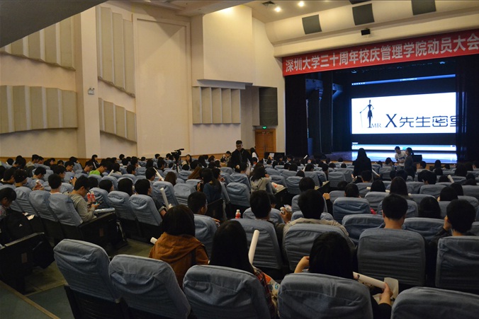 4月8日晚,由管理学院主办,管理学院学生会承办的"深圳大学三十周年校庆管理学院动员晚会暨怀旧音·悦·汇”在深圳大学国际会议厅吹响了号角。本次音乐会以怀旧音乐为主题,配合黑白默剧,华丽面具等晚会装饰,带人们穿越时光隧道,感悟旧时光。同时也为在舞蹈歌唱以及话剧等方面有才能的人提供了一个庆祝深圳大学建校三十周年而大放异彩的舞台。
