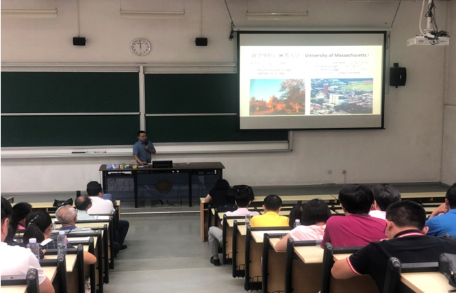 接着,刘世雄老师风趣幽默的谈起了在美国麻省大学做访问学者的经历。 刘世雄老师介绍到,美国麻省大学虽然有时不像国内这样热闹,但是生态环境好,生活氛围浓,在那里度过了静心愉悦的科研时光。刘世雄老师特别提到了与哈佛大学和Umass 老师的教学交流,与两位老师的交流以及浓厚的学术氛围锤炼了意志,启迪了思想。于此同时,刘世雄老师还分享了他参观美国加州Google总部的感受。那里紧凑的工作节奏,富有人文气息的沙滩排球,灵活的办公区域,种类丰富的符合各国口味的食堂,都为员工提供了优秀的工作条件。