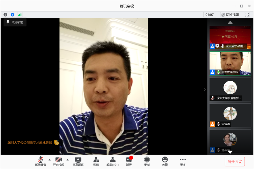 一整天的路演很快结束了。8月2日晚上20:00,深圳大学云端创新创业夏令营的颁奖典礼准时拉开帷幕。管理学院何军书记通过与各位学员、老师的交流,总结了这次夏令营的创新之处以及同学们的收获,并对本次云创夏令营的工作表达了充分的肯定。