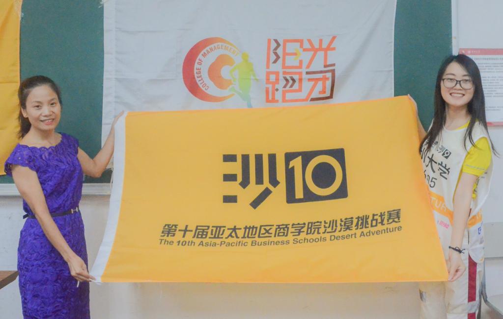 深圳大学管理学院党委书记-何军书记;深圳大学MBA教育中心主任-贺和平主任;深圳大学EDP教育中心主任-李云主任;沙9队长金曼、沙友代表梁志峰、曾光上台分享了有关亚沙赛的感想与收获,沙10队长尹娜介绍了接下来的训练计划和服务团队,赢得了台下阵阵掌声与欢呼。