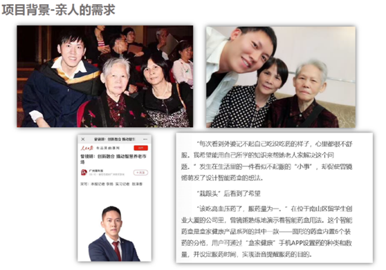 曾镜锵校友还向学弟学妹们讲述了自己创业的心路历程。他的创业动机源于自己的外婆,为了解决像自己外婆一样的老人们的服药问题,他萌生了做智慧药盒的创业念头。