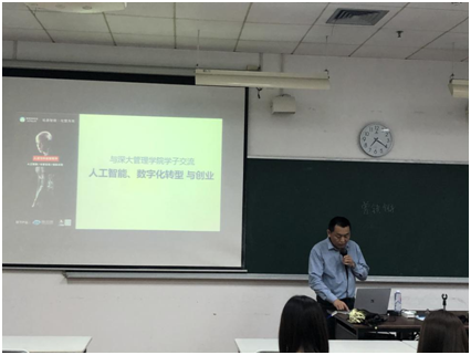 2020年10月10日星期六晚上19点,深圳大学管理学院《企业家讲座》课程企业家分享会在汇文楼H1-402成功举办。本次分享会嘉宾是爱智慧科技有限公司创始人&CEO梁新刚先生。梁总是北京大学计算机软件硕士,曾在华为公司工作多年。2016年7月,创立深圳市爱智慧科技有限公司,专注于人工智能为产业的数字化转型赋能。2017年9月荣膺第九届深圳创新创业大赛一等奖。已被认定为国家高新企业。