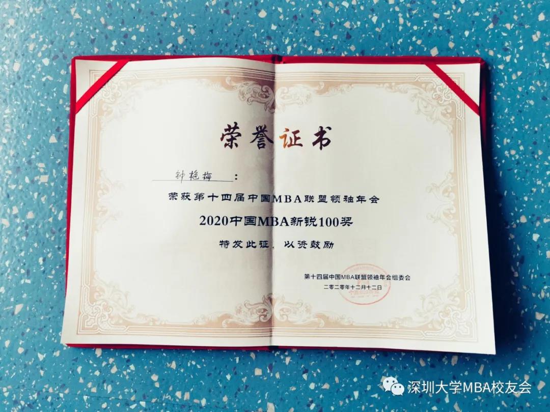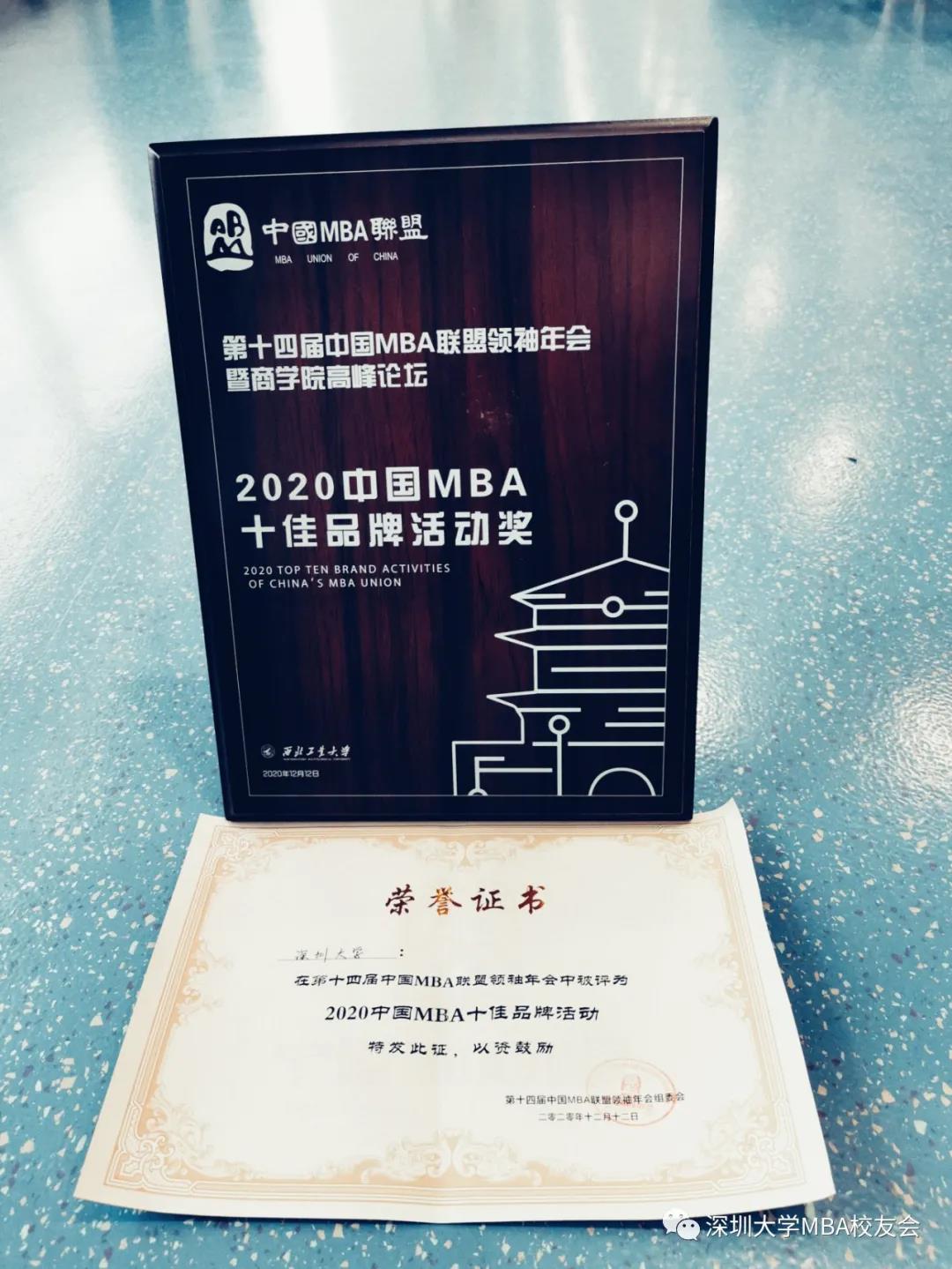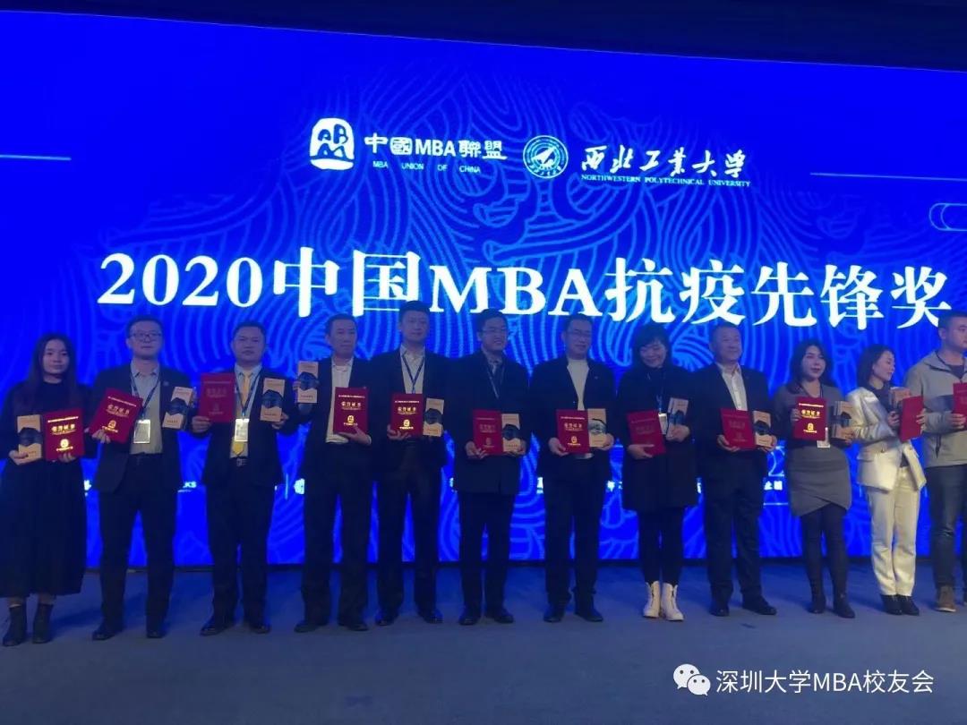 其中,深大MBA校友会会长张晓先生荣获“2020中国MBA抗疫先锋奖”,第15届中国MBA联盟副秘书长、MBA创业俱乐部创始人苏振保先生凭借自己的辛勤付出被授予“2020中国MBA杰出贡献奖”,钟艳梅女士、罗亚平先生获得“2020中国MBA新锐100奖”,汪芳女士、刘佳先生得到“2020中国MBA优秀干部奖”,深圳大学还获得“2020中国MBA十佳品牌活动”和“2020中国MBA卓越商学院”两个团体奖项。