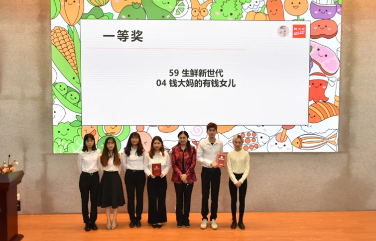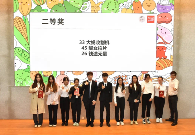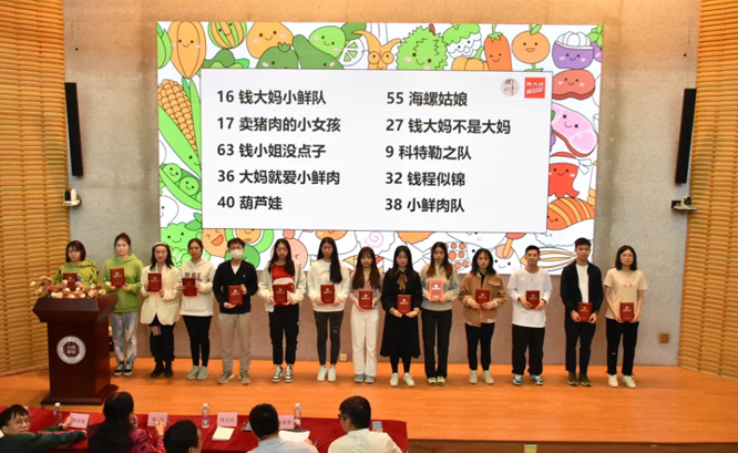 深圳大学管理学院院长李丽教授、副院长周志民教授及指导老师傅浙铭副教授,广州市钱大妈农产品有限公司袁贵华副总经理、市场部负责人钟斌,上台为选手们颁发奖状并合影。至此,第十一届钱大妈·营销好点子校园策划大赛圆满结束。
