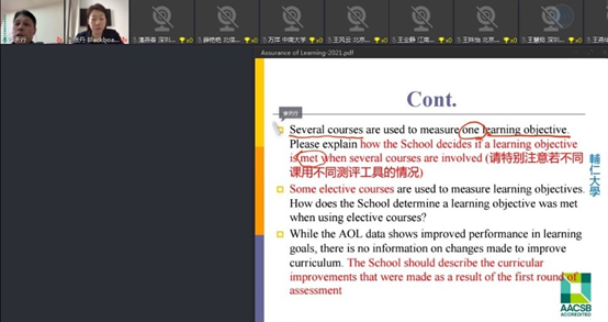 2021年5月15日至16日,由Blackboard中国教育研究院主办的“2021年第二期商学院国际认证培训研讨会”在线上成功举办。本次研讨会的主题是“AoL(学习保障)高阶应用与实践”。来自国内13所大学商学院的领导和老师们共计30余人齐聚云端,共同研讨商学院国际认证工作中常见的问题和解决办法。管理学院副院长潘燕春教授、认证工作小组王燕华老师、程雨桥老师、AACSB认证办公室成员张瑞娜、王慧茹、冯枫参加了此次研讨会。