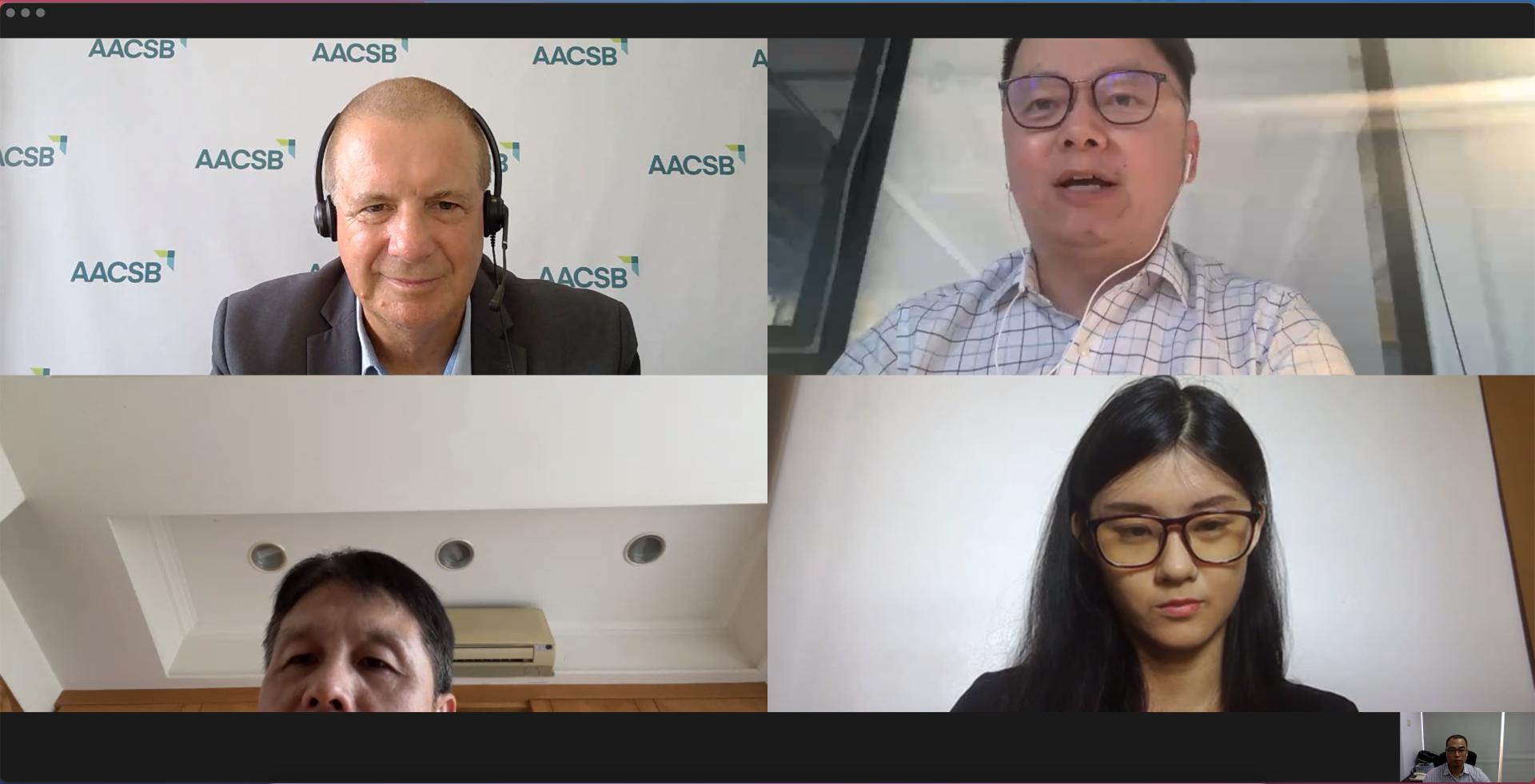 2021年5月28日下午3点(北京时间),深圳大学管理学院副院长潘燕春教授、深圳大学管理学院海外院长李天行教授,应邀参加了AACSB国际认证官方亚太组委会的线上交流。AACSB官方出席此次线上会议的有Geoff Perry(亚太区执行副总裁兼首席执行官),Guodong Xu(亚太区东亚负责人),Liyan Chen(亚太区认证服务经理)。