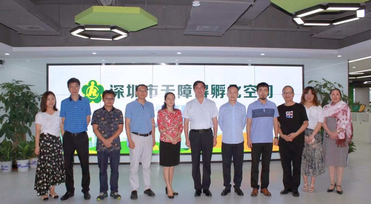 在深圳市残联党组书记、理事长人选董秀,党组成员、副理事长尹葵,一级调研员曹庭国,办公室主任黄发科,组织宣传(权益保障)部副主任罗琦卫、陈阿平,残疾人综合服务中心副主任何义林等的陪同下,研究中心一行首先参观了深圳市无障碍孵化空间。孵化空间运营负责人陈维伟介绍了孵化空间的发展历程,展示了近年来深圳市在无障碍产品研发与推广应用方面的系列成果。