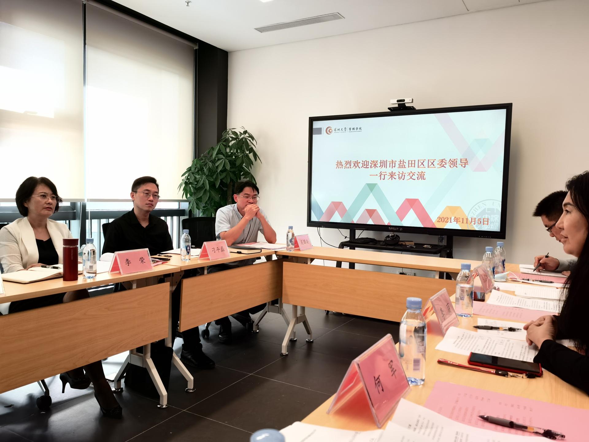 11月5日,深圳市盐田区组织部副部长李荣、人才局局长刁平磊、科创局副局长付王伟、工信局副局长吴国委、人才局副局长罗彬彬等盐田区区委一行来管理学院开展指导交流工作。管理学院院长李丽、书记何军、特聘教授陈继红、副教授秦全德、办公室主任叶娘越等领导和老师参加这次交流会议。