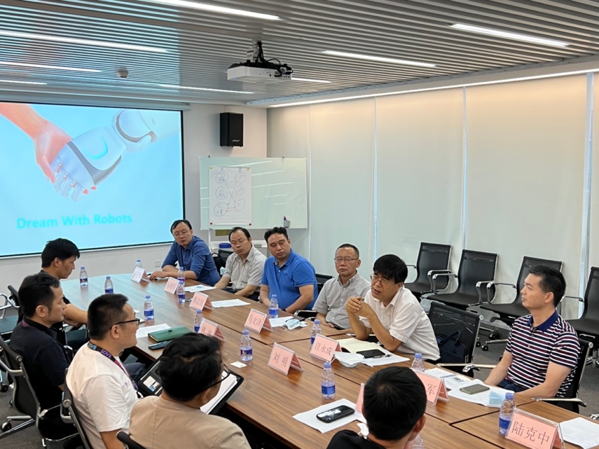深圳大学管理学院党委书记何军介绍管理学院基本情况。何军书记首先介绍了学院的专业建设与学科发展情况,并表示学院在人才培养方面成果颇丰。未来希望可以与像优必选这样的领军企业有更多合作,把企业中的实践经验与案例等带入到教学中,拓展学生视野。交流最后,何军书记诚挚邀请优必选高管参加今年秋季由管理学院承办的智能制造系统工程年会,期待学界与业界可以碰撞出更多火花。