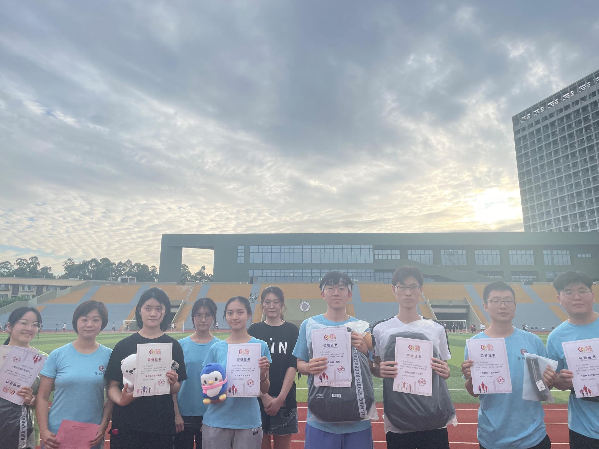 本次疫情线上跑步打卡活动中共有107名队员获得奖励,其中教工分团46名、研究生分团47名、本科生分团14名。由出席活动的学院领导分别为获奖成员进行颁奖并合影。