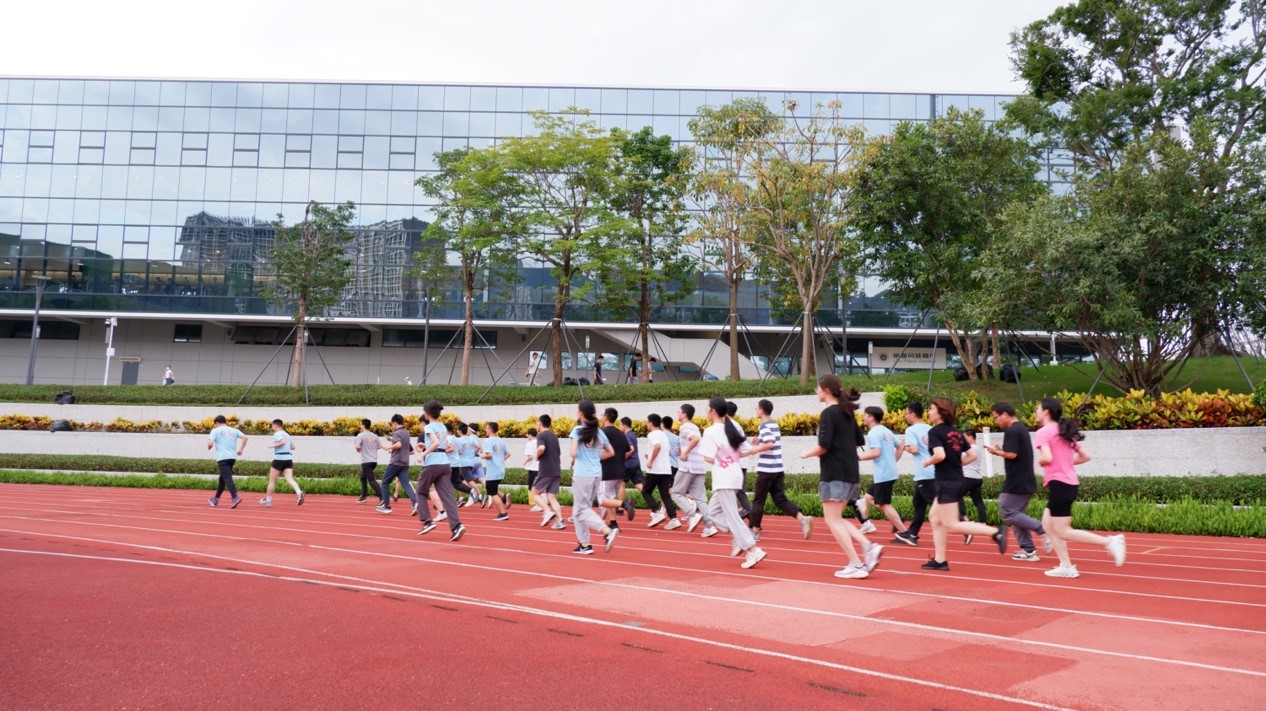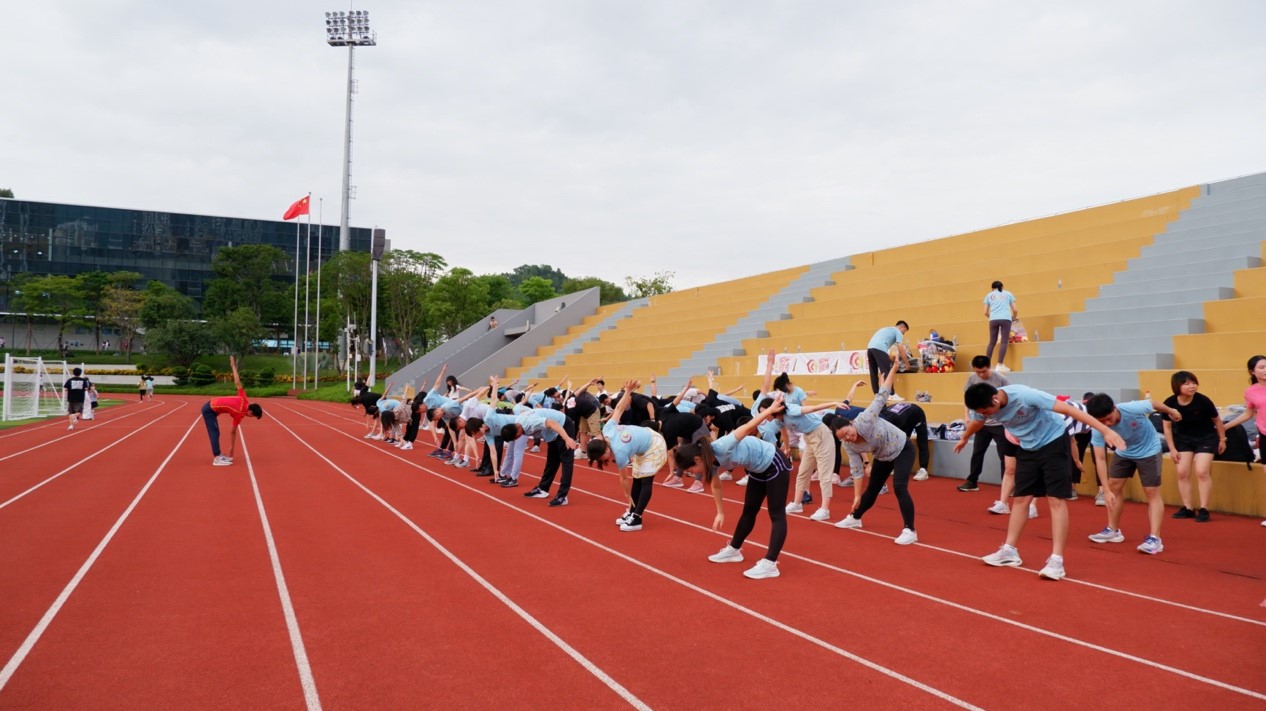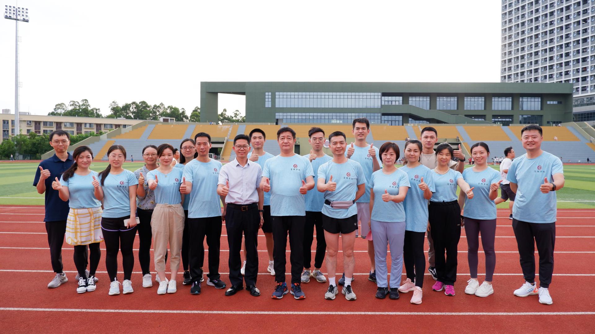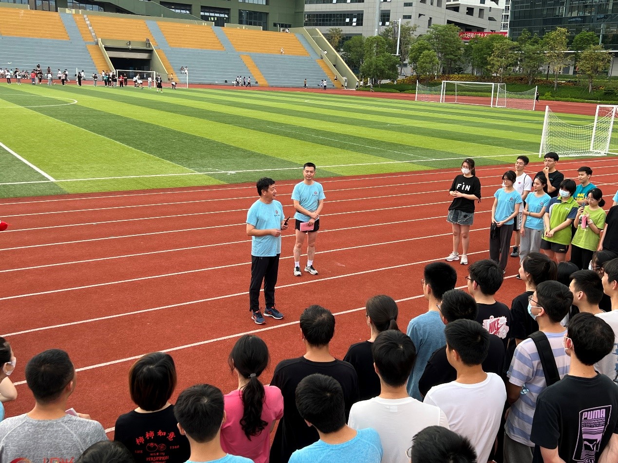 2022年5月18日周三下午五点半,管理学院阳光跑团于深大丽湖至快体育场举办主题为“荔园重聚阳光跑,强健体魄赢未来”的活动,为疫情期间参与跑团每月举办的跑步打卡表现优异的队员进行表彰和奖励,并在新学期返校后开展首次全团集训。出席本次活动的有深圳大学李永华副校长、丽湖校区管理办主任阮彬、管理学院党委书记何军、管理学院党委副书记吕茜、政府管理学院党委副书记王嘉蔚、黄意教练以及阳光跑团教师分团、研究生分团、粤海校区分团、本科生分团的部分队员,共计70余人。