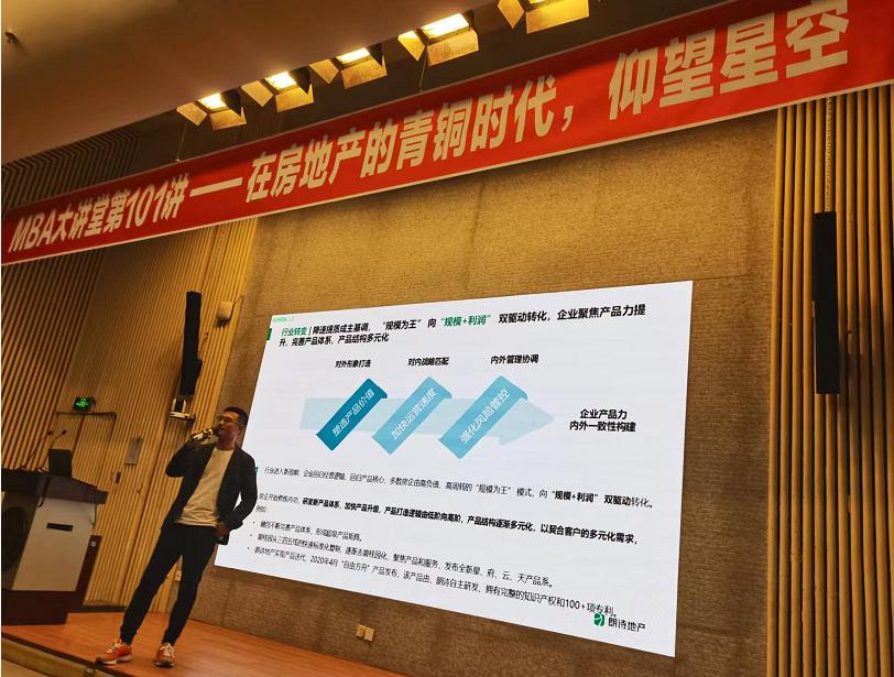 作为深大校友,谭总在讲座开始之前和我们聊起了在校的故事,回忆在深大的点点滴滴,好似历历在目发生在昨天一样;也勉励我们脚踏实地,自强不息。接着步入主题,为大家分享了房地产行业的趋势与机遇,在经历土地红利、杠杆红利后,结束了挣快钱的时代,中国经济L型增长成为常态,企业竞争开始回归到经营、产品,追求管理红利和高质量增长。在后疫情时代产品创新,大绿色、大健康、大智慧成为新方向,碳中和、碳达峰为房地产行业带来“双碳”机遇。基于这样的背景,谭总结合自身的实践和体会,为我们阐述了朗诗地产如何在低碳实践中抓住时代的脉搏,脱颖而出,并且详细地介绍了朗诗地产在低能耗和零碳建筑上的突出贡献。