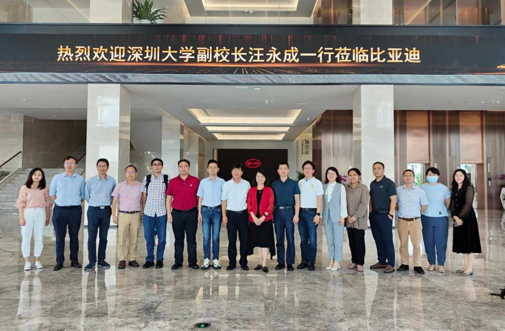 为进一步促进校企合作和就业工作, 5月26日下午,深圳大学副校长汪永成、学生部部长陈云飞、管理学院党委书记何军、管理学院副院长周志民、高等研究院副院长韦阳、电子与信息工程学院副院长黎冰、机电与控制工程学院党委副书记邓琳、心理学院副院长邹立业,以及管理学院部分系主任、副系主任一行人走访了比亚迪股份有限公司。比亚迪人力资源处总经理王珍、副总经理叶子、经理丁丽给予了热情接待和交流。