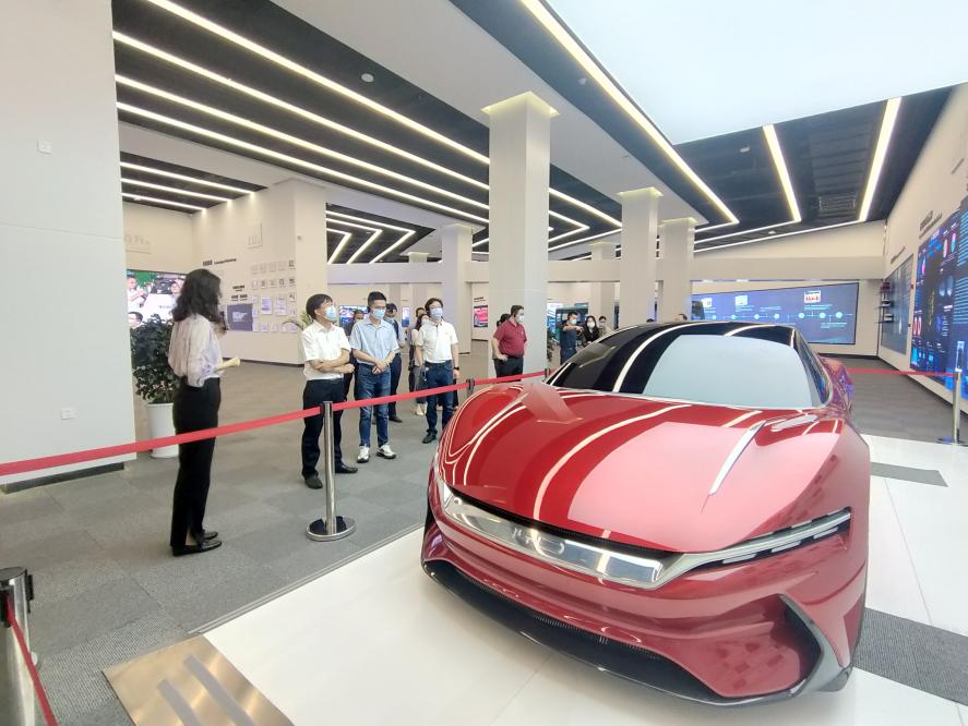 参访伊始,公司展厅讲解员为大家讲解展示了比亚迪的发展历程、品牌理念、战略布局、技术创新、产品及解决方案、企业荣誉等,现场观看了刀片电池针刺实验,同时也亲身体验了园区“云巴”,让参访一行人对公司的情况有了整体了解。