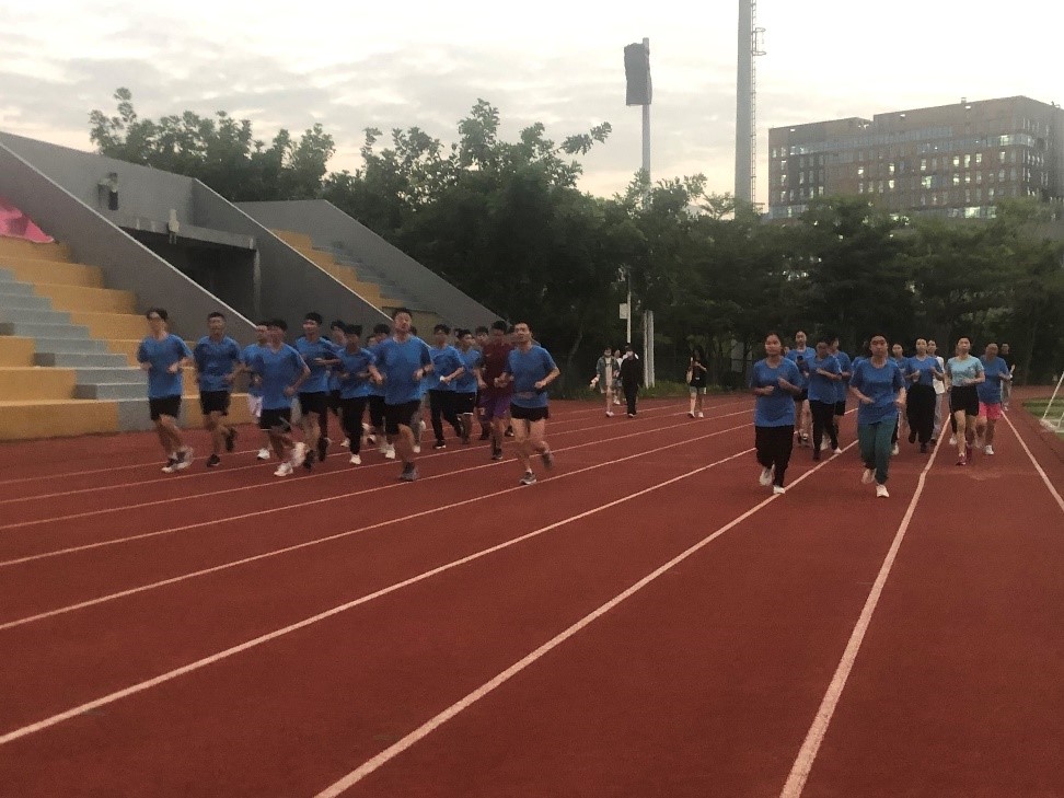 接着,黄教练带领大家做跑前热身,避免运动过程中受伤。热身结束后,由于时间原因,女生跑2.4公里,男生跑3公里。待全部队员跑步结束后,黄教练带着大家进行跑后拉伸。并讲解了关于跑步需要注意的事项,如跑前要做好热身,避免受伤;跑步时调整呼吸,嘴巴、鼻子可以同时吸气呼气,双手摆动幅度不用很大,减少能量的损耗,步幅可以小一些,步频快一些;最后,跑完步注意拉伸,为下一次更好的跑步做好准备。
