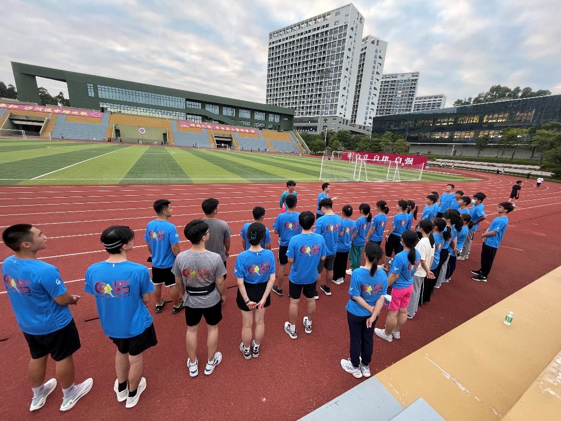 在正式训练之前,管理学院党委书记何军书记发表了简短的讲话。首先,书记向大家介绍了本学期跑团训练计划。从单一的跑步集训形式改为月中跑步集训加月末“深圳十峰”系列挑战的多样化运动形式,通过集训提高体质,为挑战深圳十峰储备体能。同时,通过丰富的训练活动能够带动大家参与运动的积极性。