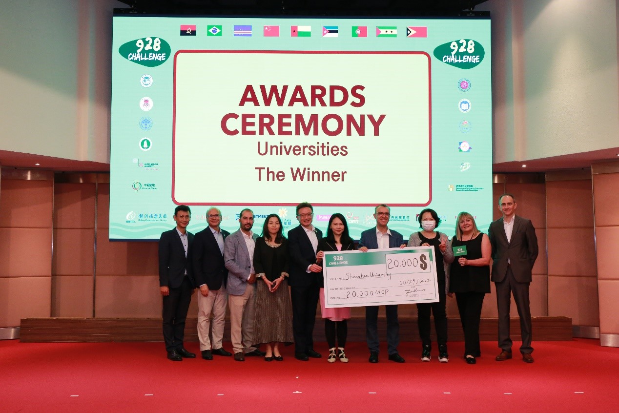 2022年10月29日,第二届“928可持续性创业挑战赛”决赛在澳门世贸中心成功举办。本届大赛共吸引了来自中国及葡语国家的250余支队伍、1250余名参赛者参加。由深圳大学管理学院组织指导的两支队伍在16支决赛队伍中脱颖而出:全英班/创英班团队获得初创企业赛道冠军,MBA团队获得高校赛道冠军。