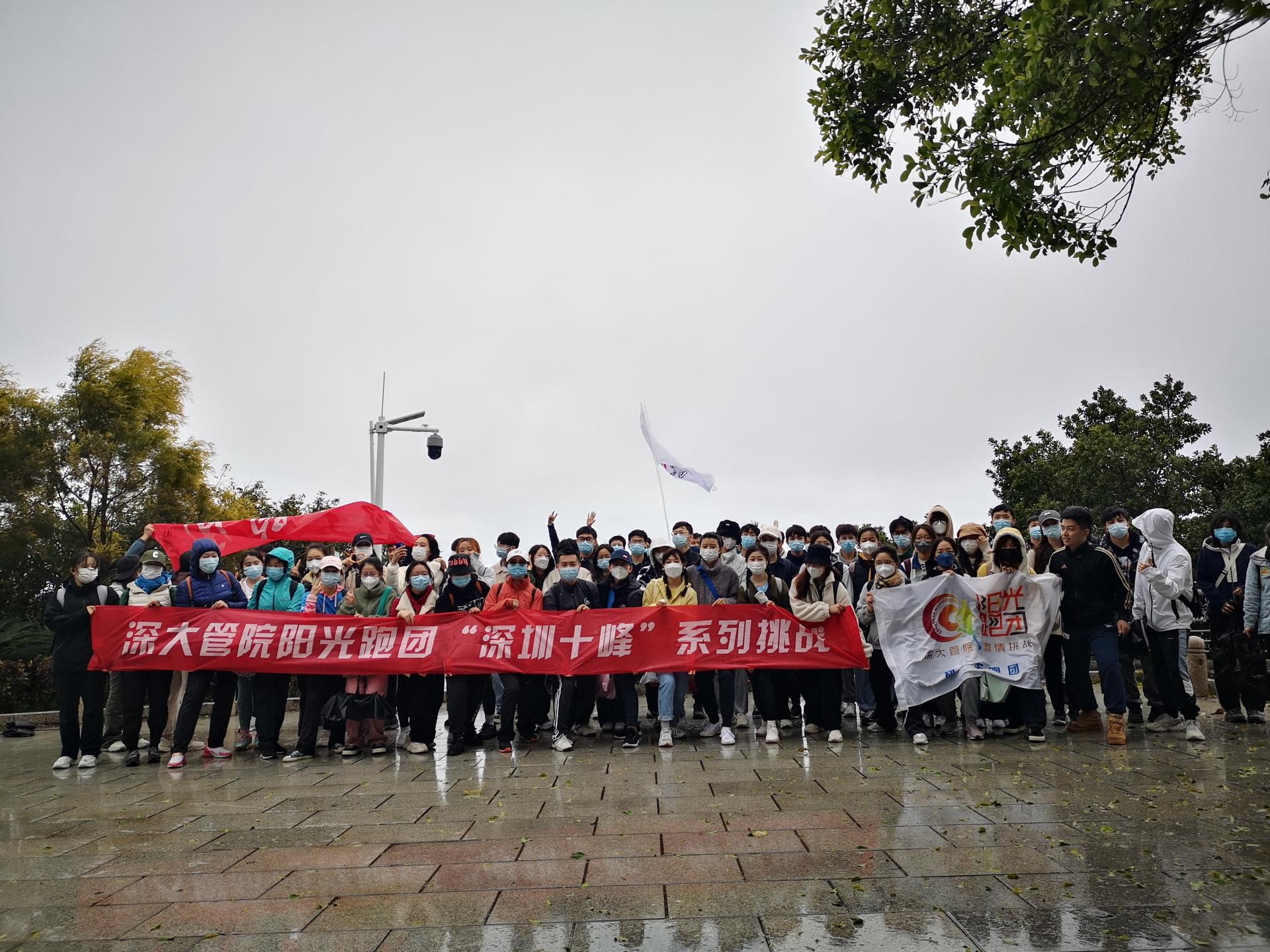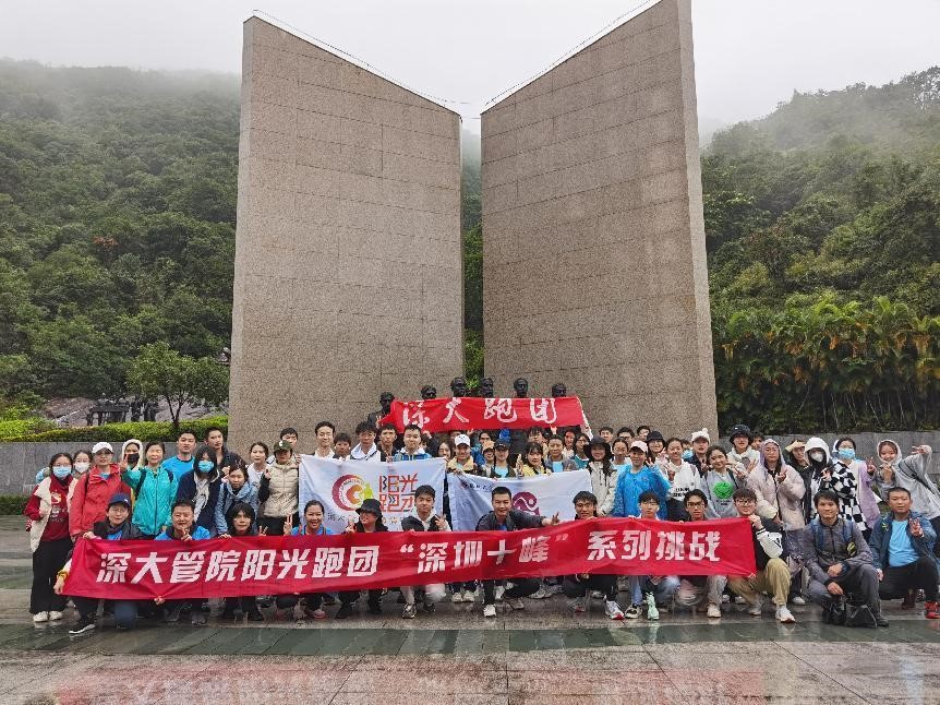 旧岁将末,在2022年即将结束之际,阳光跑团携手深大跑团(阳光跑团粤海分团)的“深圳十峰”系列挑战活动也开启了第三峰——梅沙尖的攀爬挑战。12月16日中午12点,八十余名管理学院阳光跑团和深大跑团的队员分别从丽湖校区和粤海校区乘大巴出发,向梅沙尖发起挑战并获得圆满成功。