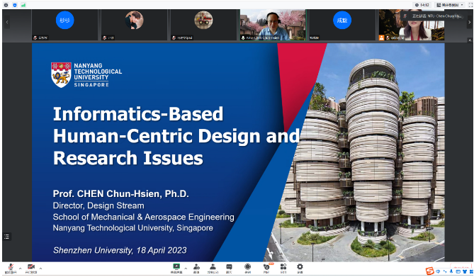 2023年4月18日上午,深圳大学40周年校庆800场学术活动 (第545场)之管理学院学术讲座,以线上形式成功举办,本次讲座特邀Chen Chun-Hsien 教授为主讲嘉宾,主讲题目为“Informatics-Based Human-Centric Design and Research Issues”,管理学院陈星宇副教授做主持,校内多名师生参加。