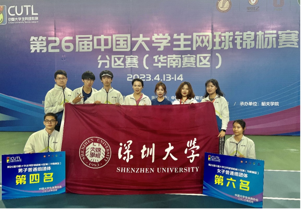 4月13至14日,第26届全国大学生网球锦标赛华南赛区分区赛在韶关学院顺利举行,来自华南地区27所高校的网球精英齐聚一堂,展开了激烈的角逐。在我院吴彤、陶可欣同学及其他队员的不懈努力下,深圳大学网球队表现出色,获得甲组女子团体第六名的好成绩,为学校赢得荣誉。