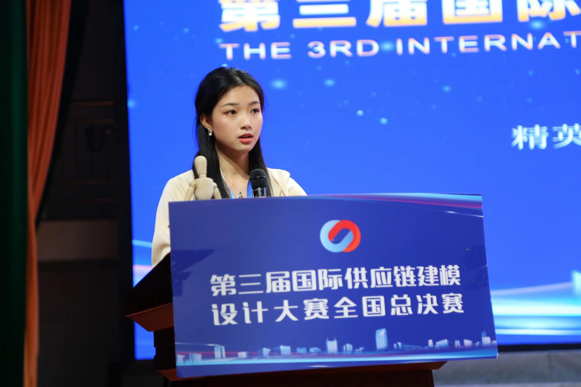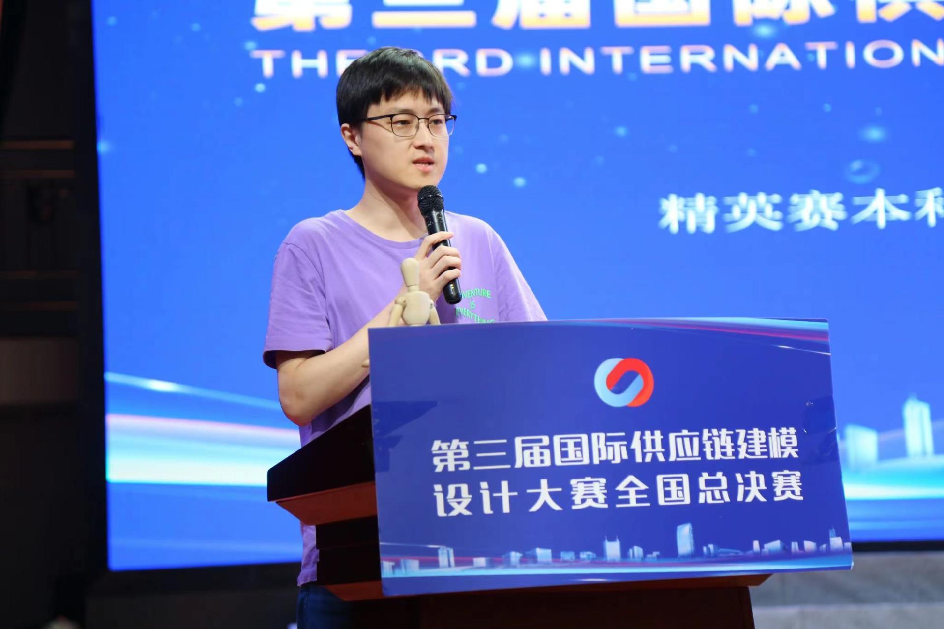 在初赛阶段,深大代表队在金波老师的指导下,团结协作、脚踏实地,认真设计研究方案,从完整性、科学性、创新性、准确性、规范性和实用价值等多个方面上不断完善研究报告。基于赛题数据,团队运用严谨的数理方法对赛题公司进行现状分析,并通过团队头脑风暴和专业理论知识,从多个角度对赛题公司的供应链进行优化,最终形成了一份长达94页的解决方案报告。经过专家评审,团队成功晋级总决赛。在备战决赛阶段,团队成员在紧张的课业之余,多次开会工作至深夜,不断改良供应链优化方案,力求精益求精。通过反复交流,确定了最终向评委展示的报告内容,并与指导老师进行了多次演练,力求在评委面前留下完美的印象。在决赛答辩中,团队以最饱满的精神状态阐述了现状分析、方案优势和前景规划等内容,获得了评审专家的一致认可,最终以最高分斩获本科组特等奖第一名。在大赛闭幕式上,团队凭借多角度的优化方案和精彩的答辩陈述获得了赛事主办方的高度认可。同时,金波老师和李呈卉同学分别作为指导教师代表和参赛选手代表发言,展现了深大人的风采。