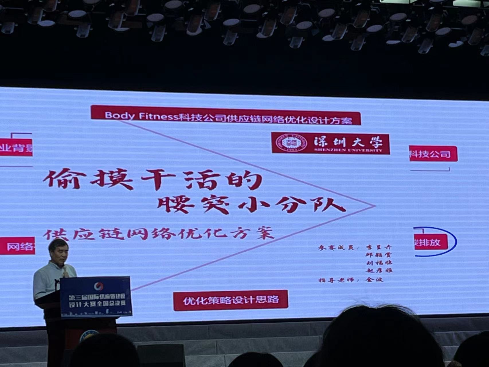 2023年5月20日,第三届国际供应链建模设计大赛总决赛在武汉理工大学余家头校区隆重举行。深圳大学管理学院的刘福临、李呈卉、赵彦雅、邱颖赏四位同学组成的深大代表队,在激烈的角逐中脱颖而出,荣获第三届国际供应链建模设计大赛本科组特等奖第一名,展现了深大学子的卓越风采。