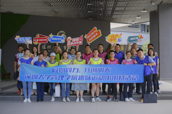 为丰富学院教职工文体生活,给各位老师提供一个锻炼身体、增进团队合作以及缓解压力的机会,深圳大学管理学院于2023年11月10日在学院一楼空地举办了一场趣味运动串串烧活动。这是一场融合了智力与体力的友谊竞技运动会,各位老师在本次活动中,展现了个人风采以及团队合作精神。