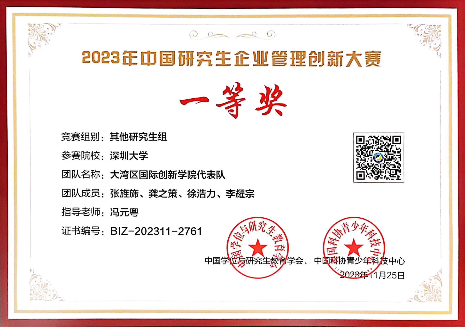 “大湾区国际创新学院代表队”团队获得决赛一等奖
