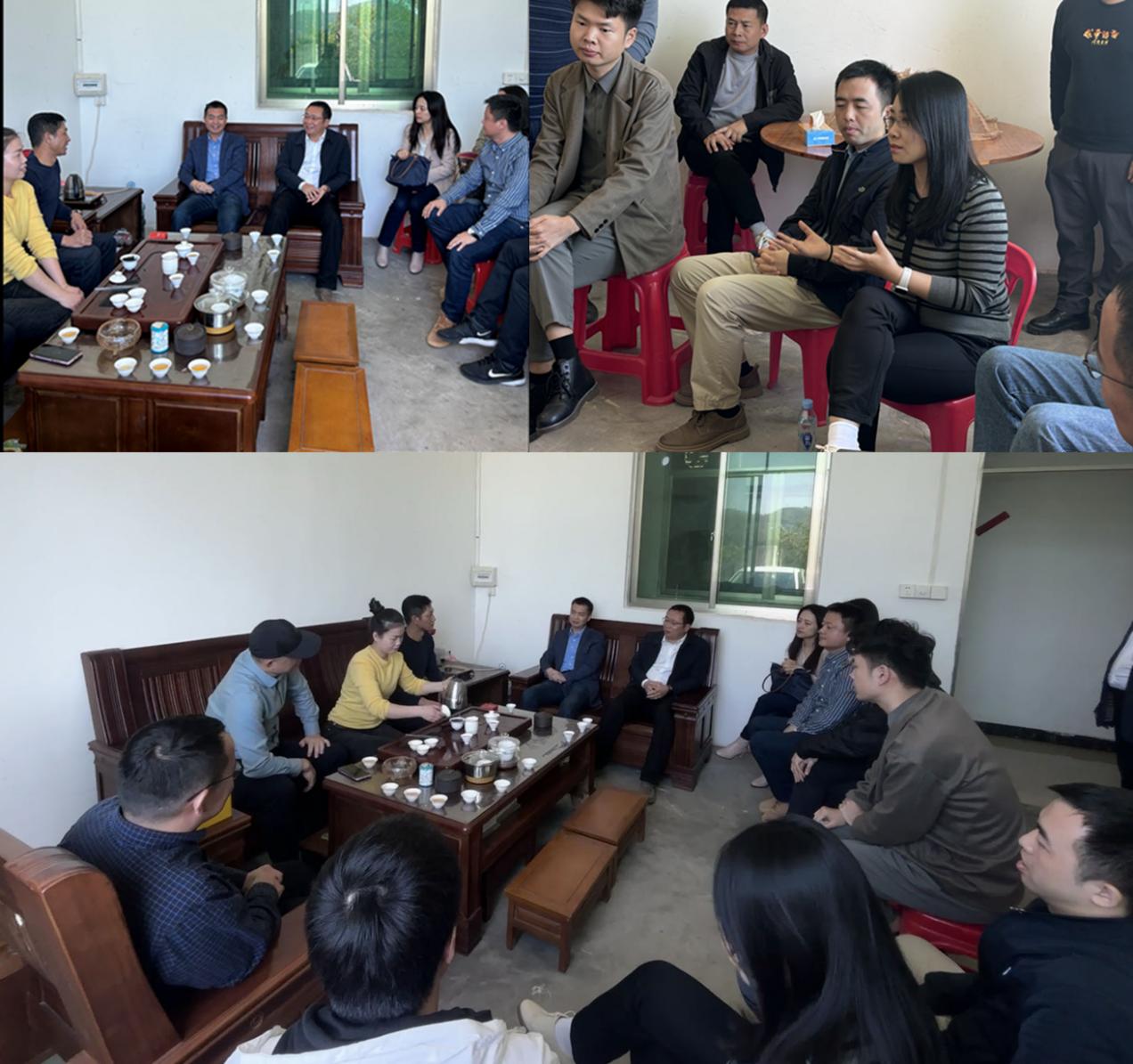 上午 11:00,调研队伍经过三个半小时车程刚到达陆丰市委就马不停蹄立即投入调研。在陆丰市农业农村局副局长冯志填及深大派驻陆丰市帮扶干部邵存才主任等干部的陪同下,调查组来到城东街道高美村进行了近两小时的实地走访。高美村的主要产业是地区知名茶叶高美茶。调研组实地考察了当地的茶园、茶厂,并对高美茶缺少产、供、销一体化发展、销路受限的问题展开了热烈的现场交流。