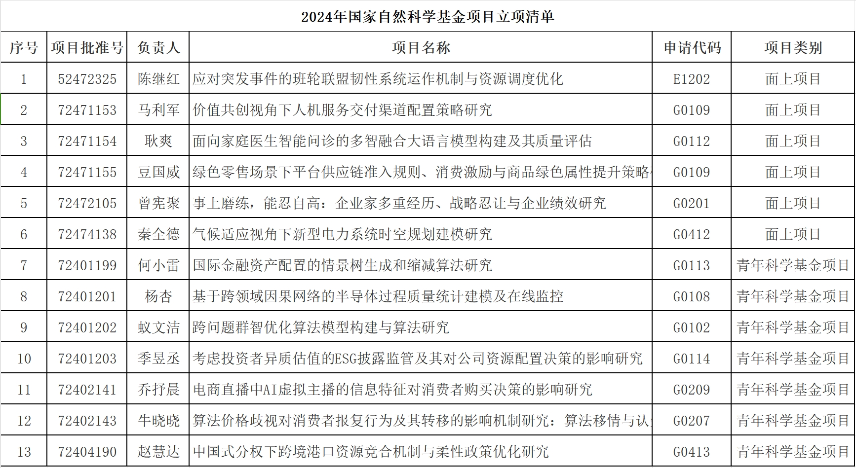 喜讯频传,荣耀加冕!我们学院迎来了前所未有的辉煌时刻,共有13位老师荣获2024年度国家基金项目的殊荣,这一成就不仅彰显了学院深厚的科研实力与蓬勃的创新活力,更是对老师们辛勤耕耘与卓越贡献的最高赞誉。