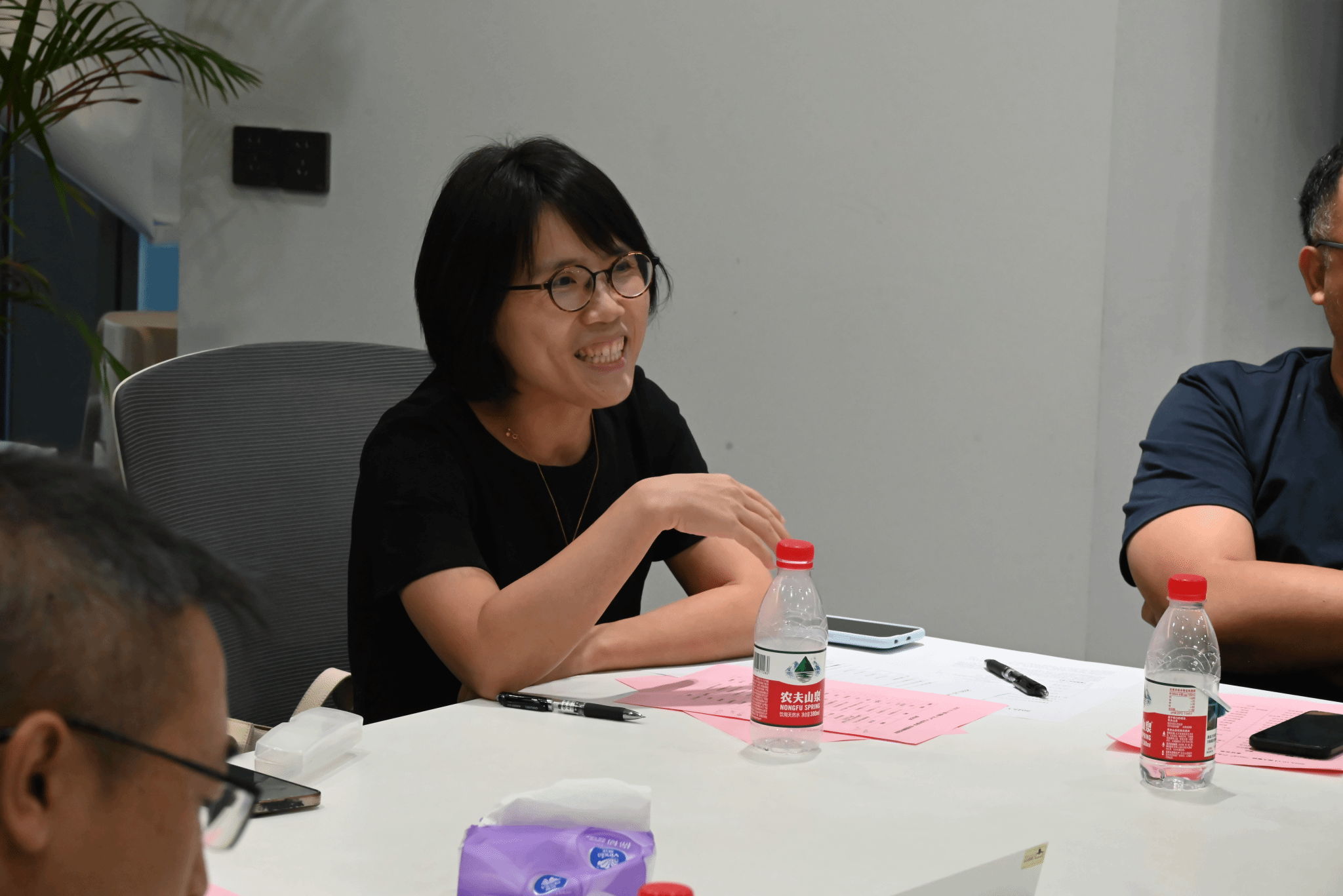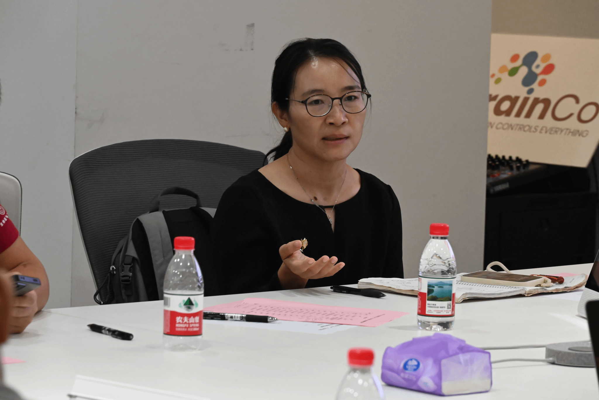 现场大家积极提出疑问、发表见解,深大生医工学院的院长陈昕教授、生医工学院常春起教授、黄淦副教授从生医工方向对于人脑科学的未来发展以及与企业的联动融合和技术支持方面进行了交流和提问。人工智能学院王毅副研究员对采集脑电信息时的信号处理机制进行提问。电信学院史伟伟副教授表示希望与强脑科技在人机交互和低功耗方面的合作意愿。心理学院彭微微教授表示强脑科技公司在儿童认知及神经反馈训练方面的应用也与心理学在人机交互影响下的心理问题有较强的关联性。管理学院潘燕萍老师就创新企业的监管准入难度、创业节奏、与政策的联动配合和不同产品领域的侧重及投入程度的区分进行提问。强脑科技公司的主要负责人从技术、市场、战略、产品的角度详细解答了老师和同学们的疑问,并对脑机科学技术的未来发展和合作可能进行展望。