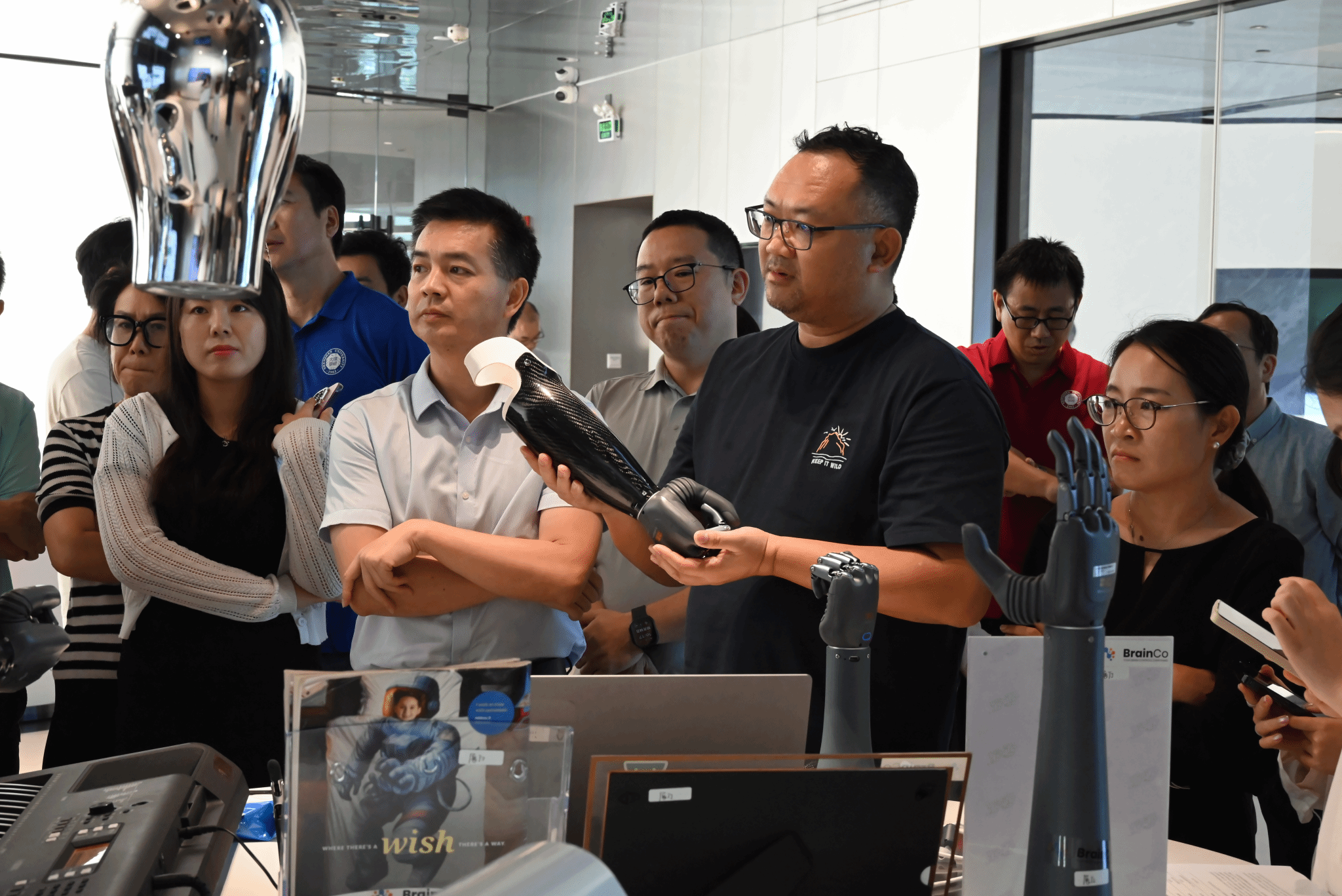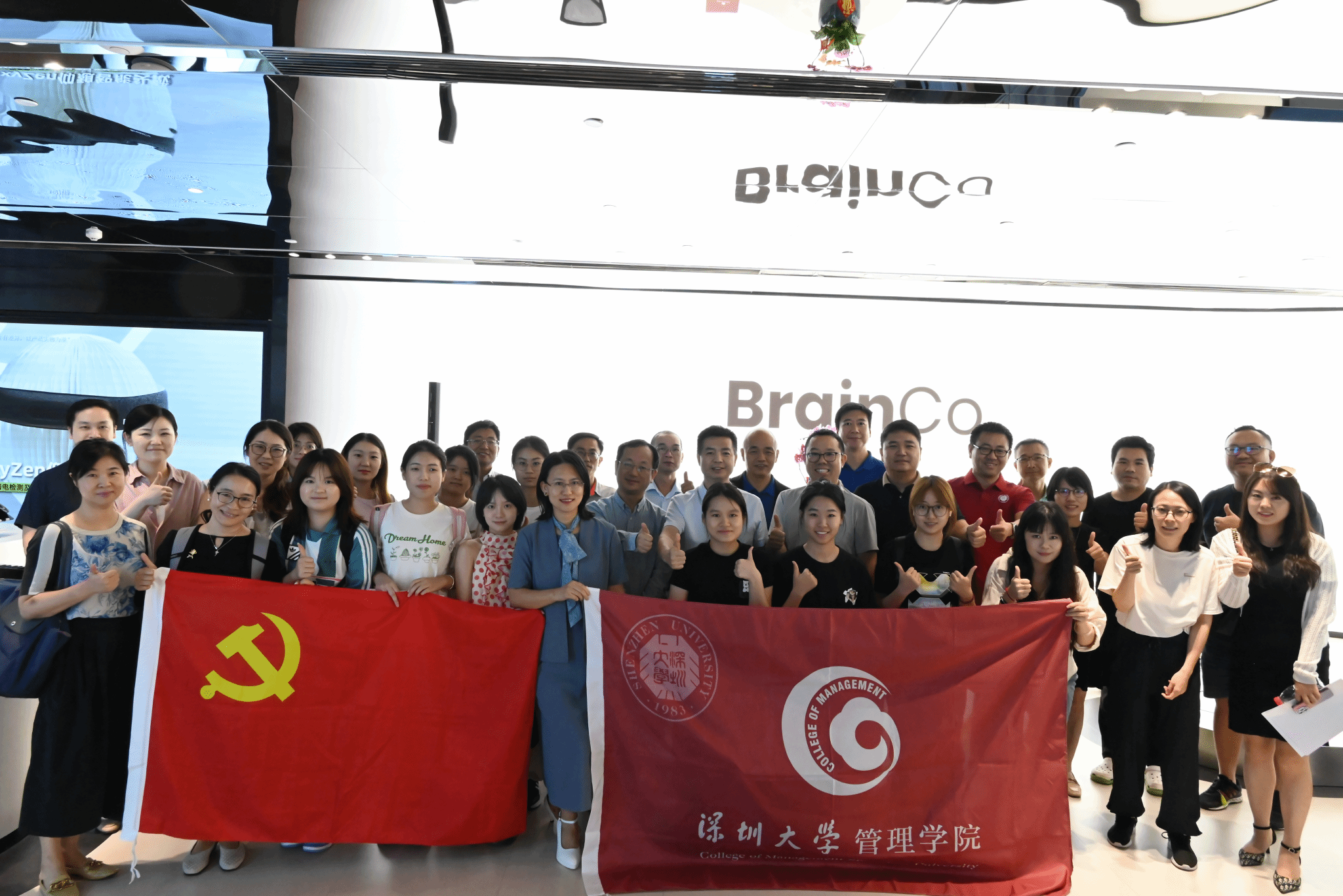 2025年10月14日,管理学院工商管理系教师党支部组织参访了脑机接口产业龙头企业BrainCo强脑科技深圳子公司,此次活动是管院组织的深圳“20+8”产业系列走访的第18站。活动由管理学院何军书记带队,30多位深大管院、生医工学院、人工智能学院、电信学院、心理学院师生及校友参加了活动。强脑科技副总裁程交、具身智能业务负责人张知阁及多位强脑科技高管接待并出席了交流活动。
