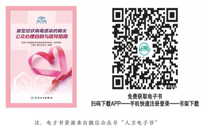 后记:为缓解公众心理压力,增强战胜疫情的信心,在国家卫健委疾病预防控制局指导下,中国心理卫生协会组织专家撰写了《新型冠状病毒感染的肺炎公众心理自助与疏导指南》,该指南为确诊患者、疑似患者、医护及相关工作人员、密切接触者、不愿公开就医者和普通大众提供了不同的心理自助和疏导建议。