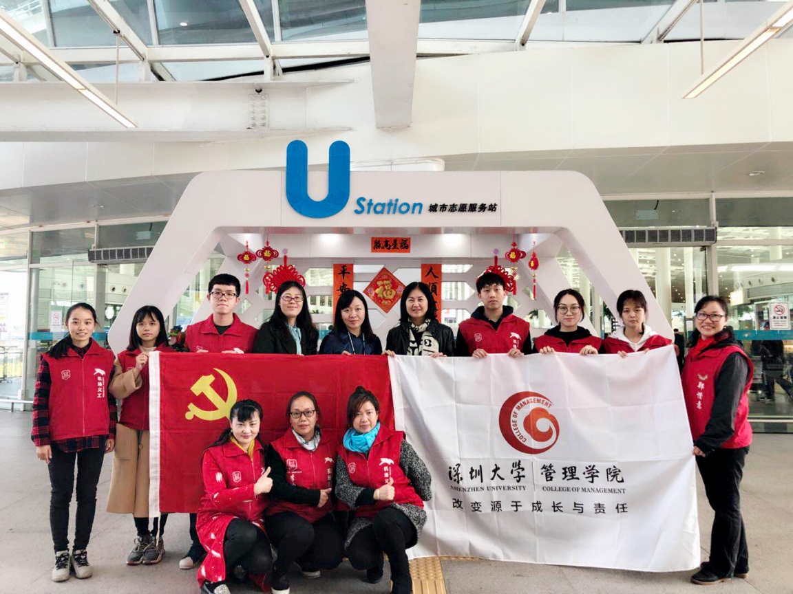 2月12日中午,管理学院党委书记李丽教授来到机场U站看望了同学们,并和同学们进行了交流。书记希望同学们充分利用这次义工活动的机会多观察、多请教、多学习、多总结,从志愿服务过程中感受赠人玫瑰手有余香的快乐,体会“来了就是深圳人,来了就当志愿者”这种情怀,在实践中学习、充实和提高自己。同学们也表示在义工活动中学习到了很多课堂上学不到的知识,同时在帮助他人的过程中得到了非同寻常的快乐,受益匪浅。