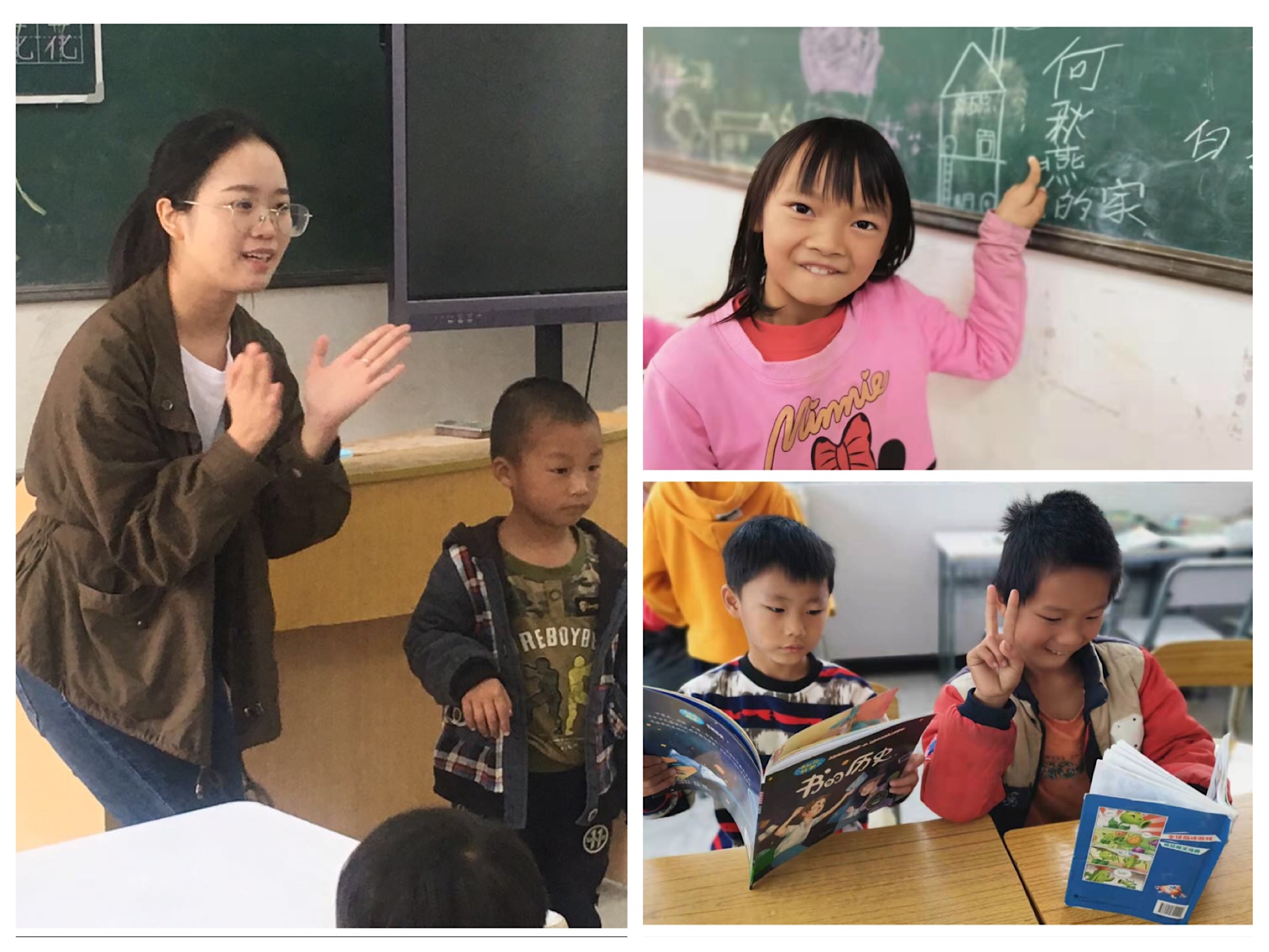 捐书仪式后,慰问小组学生代表和同学们进行热情欢快的互动交流,不仅教同学们复习所学的生字、词组,还和他们一起唱歌、画画、玩耍,整个校园回荡着小朋友们的欢声笑语。
