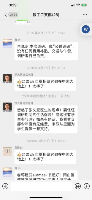 蒋建武:新冠疫情给中华大地带来了巨大灾难。年初,学院召开学科点会议时,我们支部党员耿旭老师提出:非常时期,深圳大学管理学院老师能否发挥专长为社会做点什么? 这一建议得到学院首肯,并马上付诸行动!!随后,工商管理系、公共管理系、管理科学系、市场营销系和人力资源管理系的多位老师分别录制“疫情下的管理对策”系列公益微课,从各自的专业视角来谈疫情下社会、政府、企业、事业单位的管理对策和思考,凸显了身处社会主义先行示范区的高等院校应有的社会作为与担当。支部成员刘筱、罗文恩和我都参与了微课活动,丁婉玲为创业学院开始直播课,一起在后方为抗疫作出了一些努力!支部成员王荣在参与录制微课之余,发挥心理学专业之长,为深圳市民提供心理咨询和辅导,开设心理健康视频讲座,为社会大众提供力所能及的帮助!