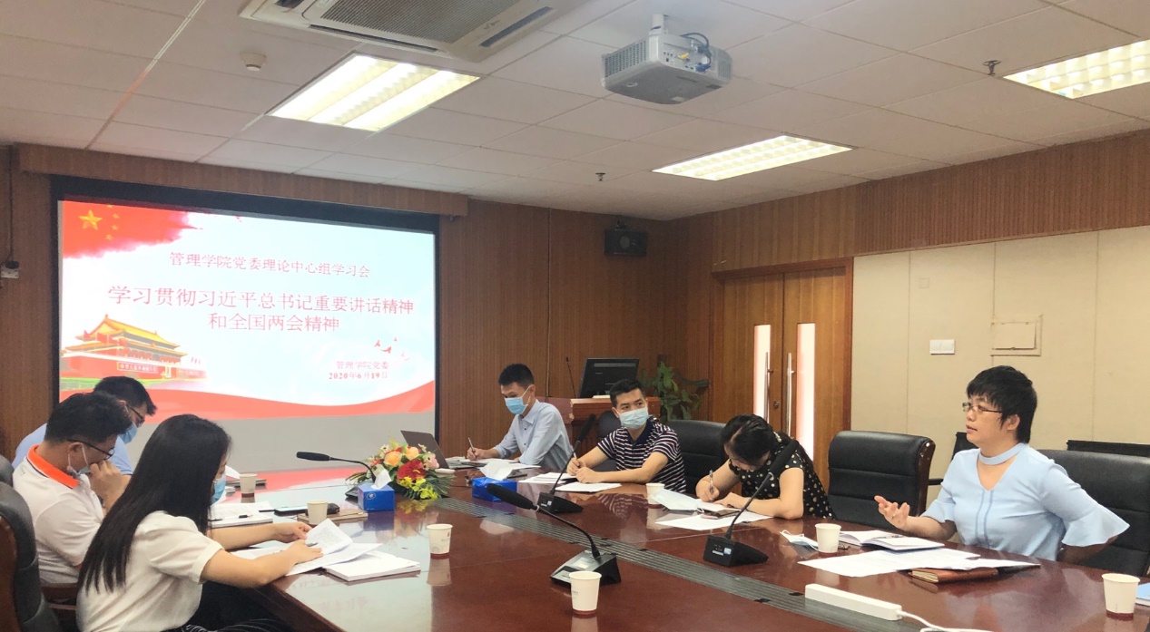 为贯彻学习全国两会精神及习总书记两会期间重要讲话的要求,管理学院于6月19日在学院1400会议室举行了党委理论中心组学习会,院党委委员李丽、何军、马卫红、蒋建武、丁婉玲参加了此次学习会。