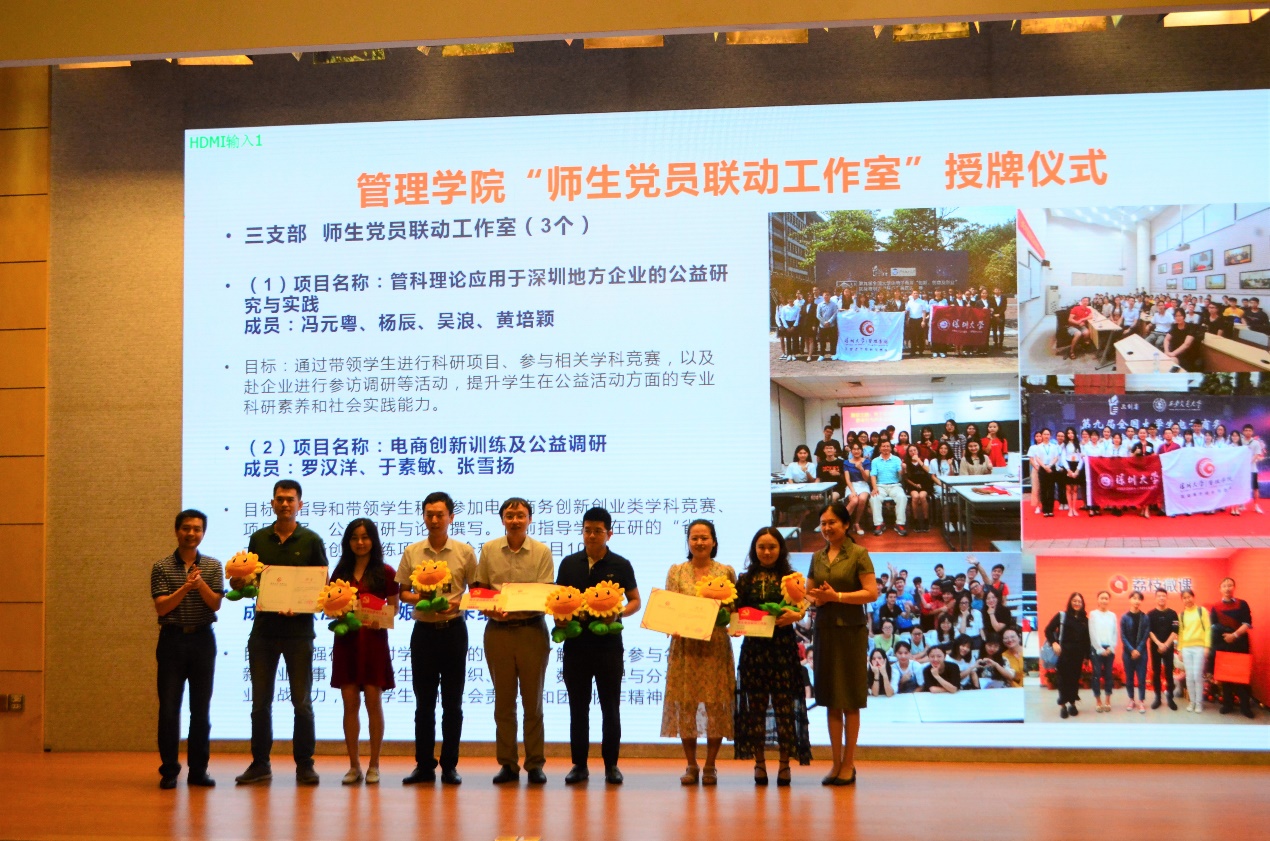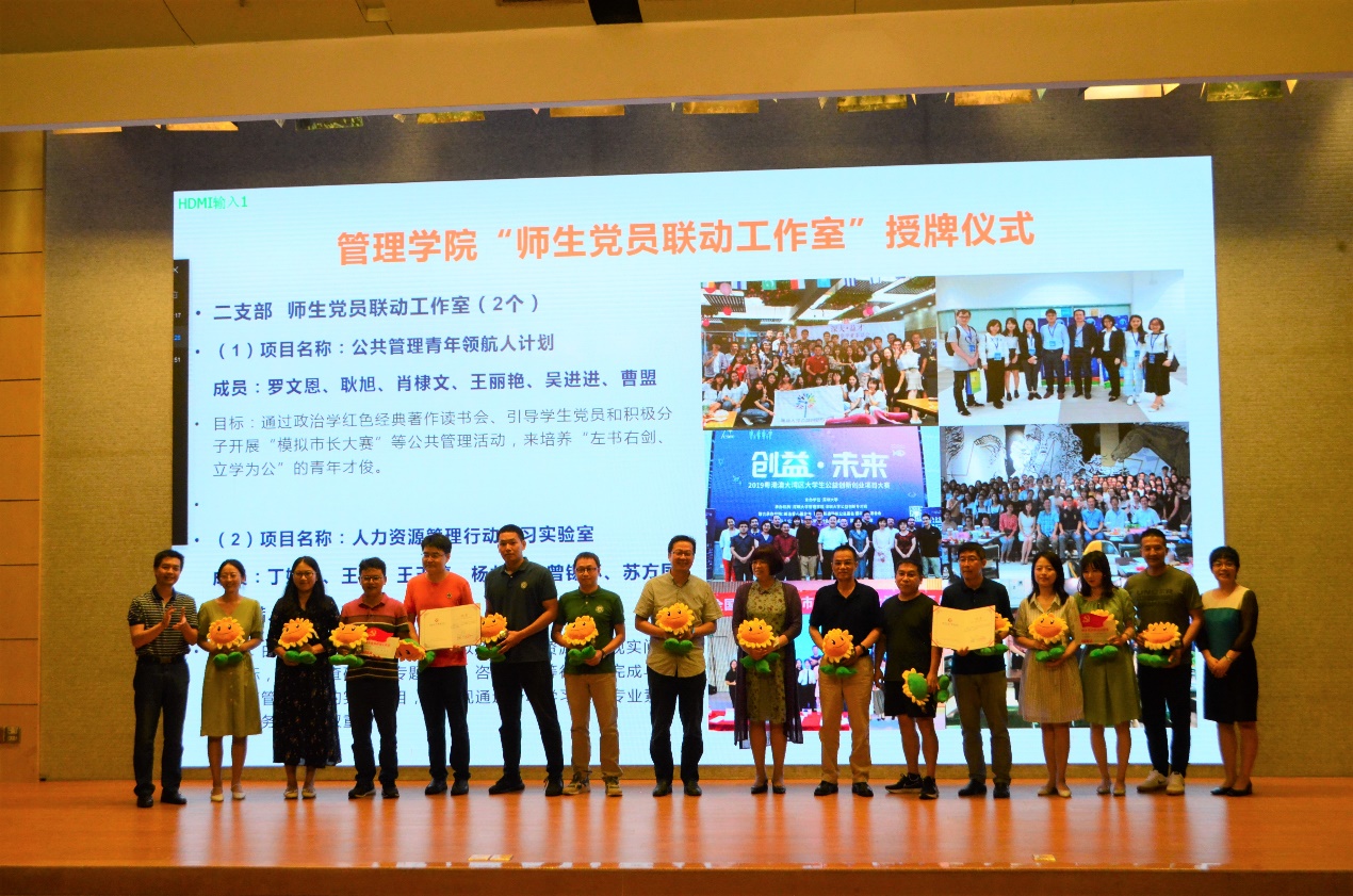 为探索师生党支部共建,师生党员联动,共同发挥党员带头作用,带动学生专业社团的发展,带动学生参与学科竞赛、社会调研、社会服务,提升学生专业能力和社会责任感,管理学院在三个教工党支部发动部分党员教师,率先建设8个 “师生党员联动工作室”。8月28日,师生联动工作室授牌仪式在汇星楼1号报告厅举行,李丽院长,何军书记,周志民副院长、马卫红副院长、潘燕春副院长、王嘉蔚副书记出席了此次授牌仪式。