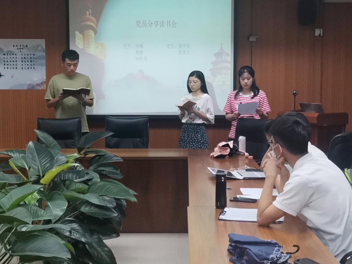 活动的第三部分是党员代表读书分享。此次读书分享的党员代表分别为:何梅、黄兆荣、杨帆捷、王佳芸和薛博文。