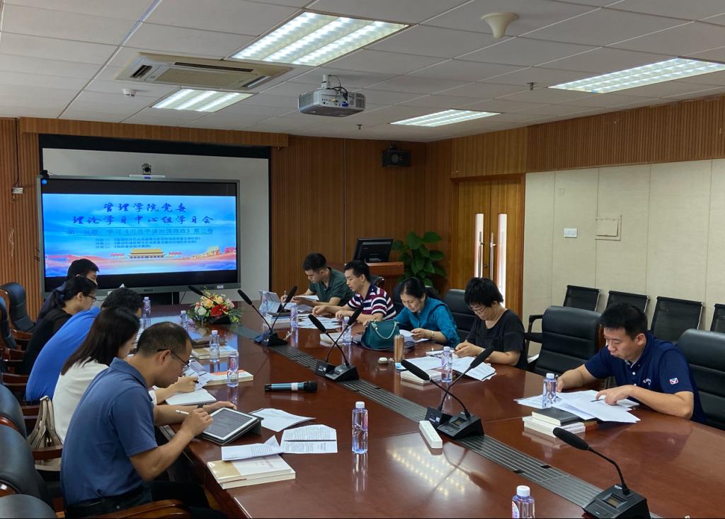 为贯彻学校关于认真学习《习近平谈治国理政》第三卷的要求,管理学院党委于9月28日在学院1400会议室召开了本学期第三场党委理论学习中心组学习会,集中学习了习总书记关于经济发展的三篇重要论述。院党委委员李丽、何军、马卫红、王嘉蔚、丁婉玲,纪委委员贺和平、汪静及非党员院班子成员周志民、潘燕春一同参加了此次学习会。