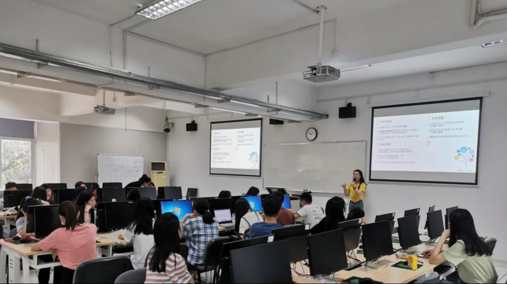 在三位同志分享竞赛经验的环节中,张悦同志认为,参与赛事难免会失败,因此与有经验的同学一起,组建一个成员间优势互补的团队十分重要。在每次大赛后团队应积极复盘、总结经验,若这次失败,下一次再继续挑战,同时也要乐于将自身的竞赛经验分享给师弟师妹们,做他们竞赛路上的“引路人”。参与竞赛不仅能提升个人的综合能力,高含金量的赛事对个人升学、做科研和工作等未来发展都起着关键的作用。唐珊珊同志表示,在某个大赛中,她所在的团队在校园选拔赛就被淘汰了,但这场赛事仍使她感悟颇丰,在竞赛过程中,有时一帆风顺,有时坎坷曲折,团队要有坚定的信念,不轻言放弃。郑颜宗同志进行了他的竞赛心得分享。他认为,参加比赛就是一个实践的过程,可以考查自身的专业素质,倒逼自己不断学习新知识。无论是调整ppt的逻辑,还是运营一个项目,从0到1,再实现从1到100的不断进步,都会对自身能力提升有很大帮助,而且可以为自身的简历添砖加瓦,甚至可以跟大厂的实习划上等号,他表示,很多逻辑框架都是在在竞赛经历过程中不断搭建起来的,竞赛越早参与越好,重在参与,关注自身成长。