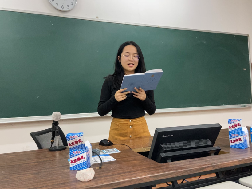 会议开始,第一项议程是宣布支部成立,欧阳思敏同志在讲台上介绍人力本科支部情况,共有4名正式党员和13名预备党员,在接下来的学习活动过程中将以新支部的形式进行展开。