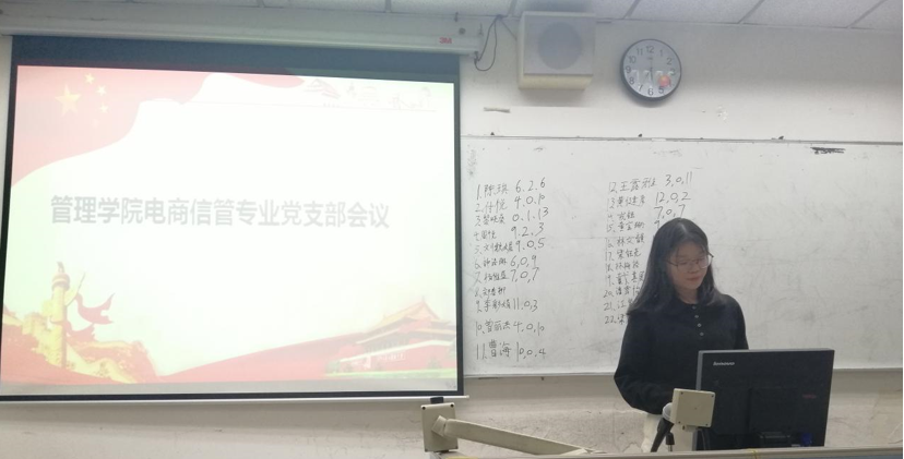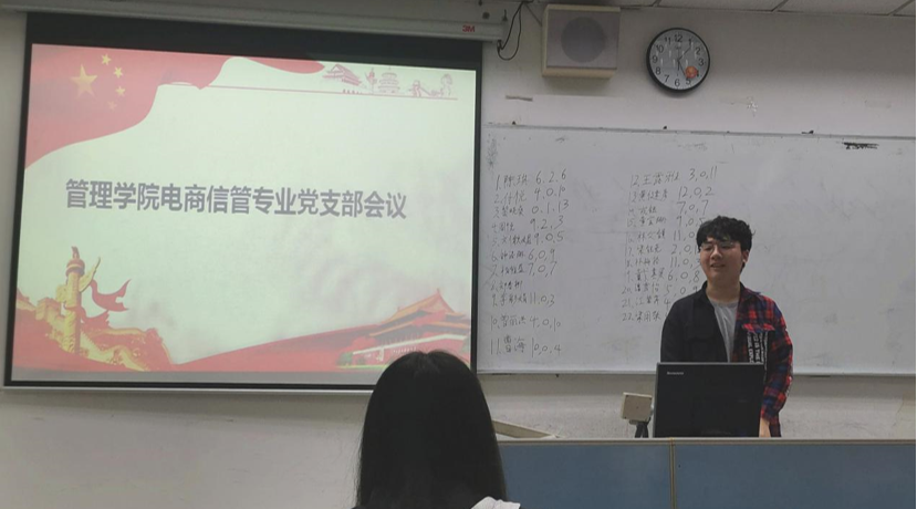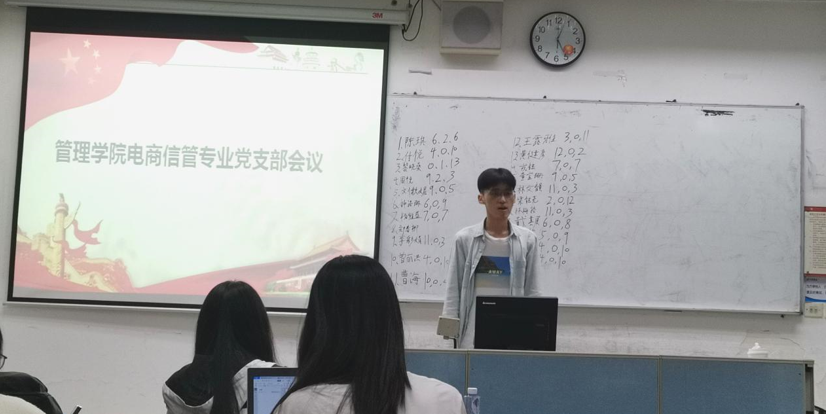 管理学院本科2017级党支部根据院系专业拆分后,电子商务专业和信息管理与信息系统专业共同组成了本科管理科学系党支部,现有3名正式党员,8名预备党员,朱维华同志担任支部书记,廖盈同志、邱海芸同志、刘福华同志和梁景欣同志暂任支委。之后的党务工作、党日活动均以本支部为单位开展工作。