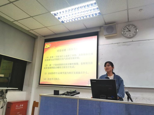 活动伊始,植晓铭同学指出,习近平总书记在深圳经济特区建立40周年庆祝大会上发表的重要讲话,回顾了40年来深圳经济特区实现的五大历史性跨越,总结了经济特区40年改革开放、创新发展积累的十条宝贵经验,对新时代深圳经济特区建设提出六项明确要求,对经济特区党的建设和精神文明建设作出部署。