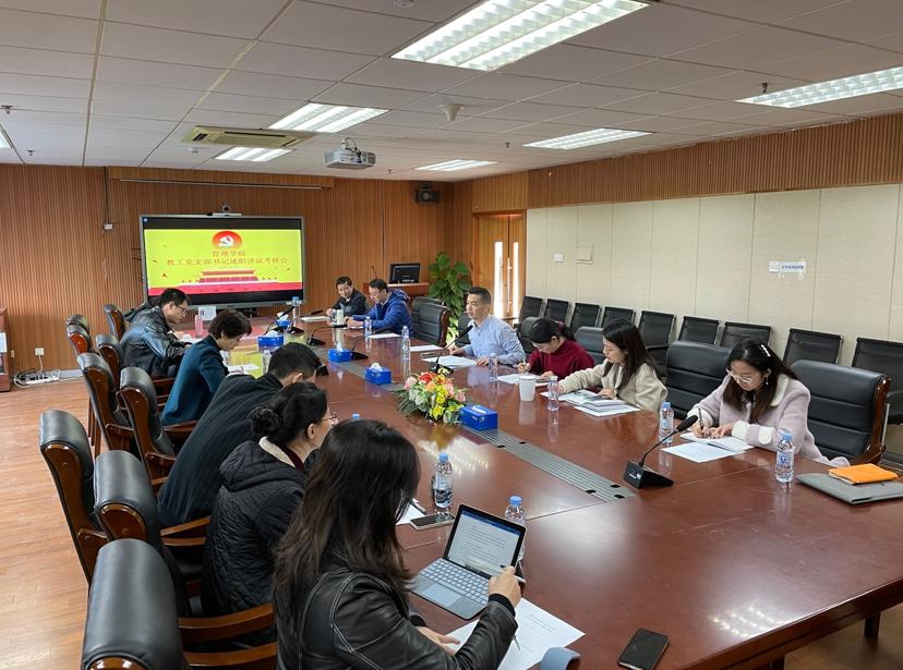 2020年12月30日上午,管理学院教工党支部书记述职评议考核会议在文科楼1400会议室召开,管理学院党委何军书记、继续教育学院党总支王瑜书记、教工第一、第二、第三党支部书记、8位师生党员联动工作室负责人参加会议。